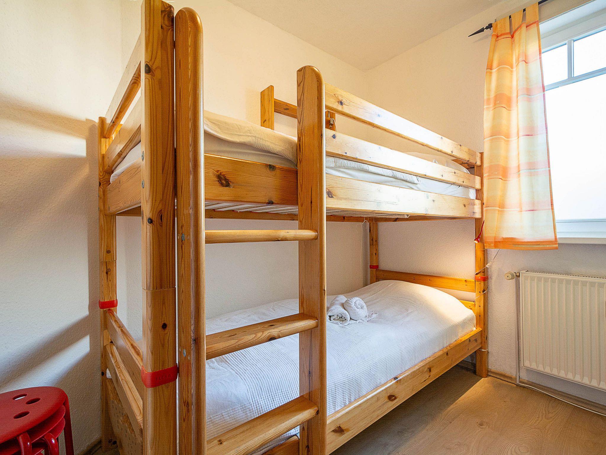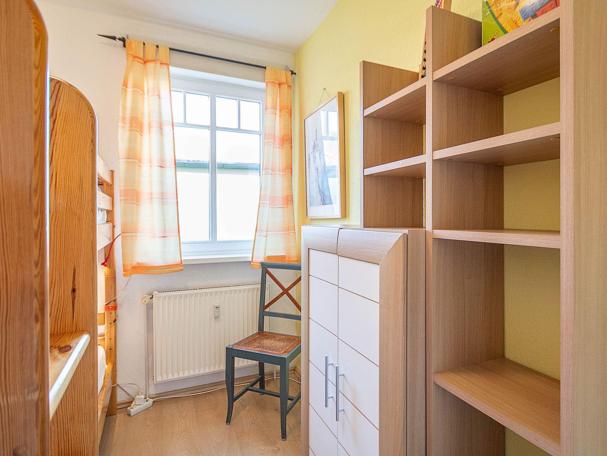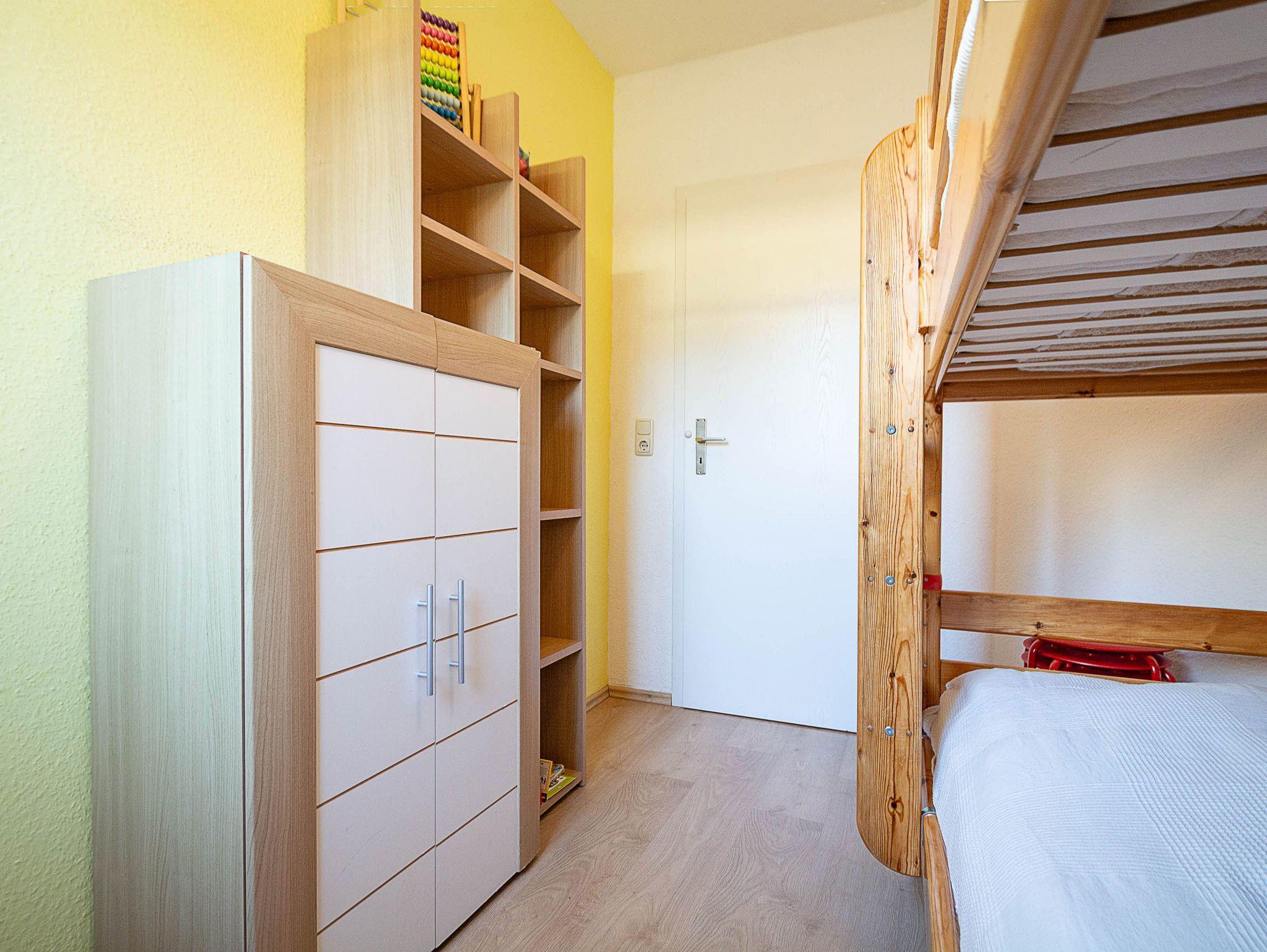Die beiden Schlafzimmer sind liebevoll eingerichtet und bieten erholsame Rückzugsorte. Das Hauptschlafzimmer verfügt über ein komfortables Doppelbett und einen Kleiderschrank mit integriertem Fernseher. Das zweite Schlafzimmer ist mit einem Etagenbett und einer geräumigen Kommode ausgestattet. Gardinen sorgen für die gewünschte Privatsphäre.