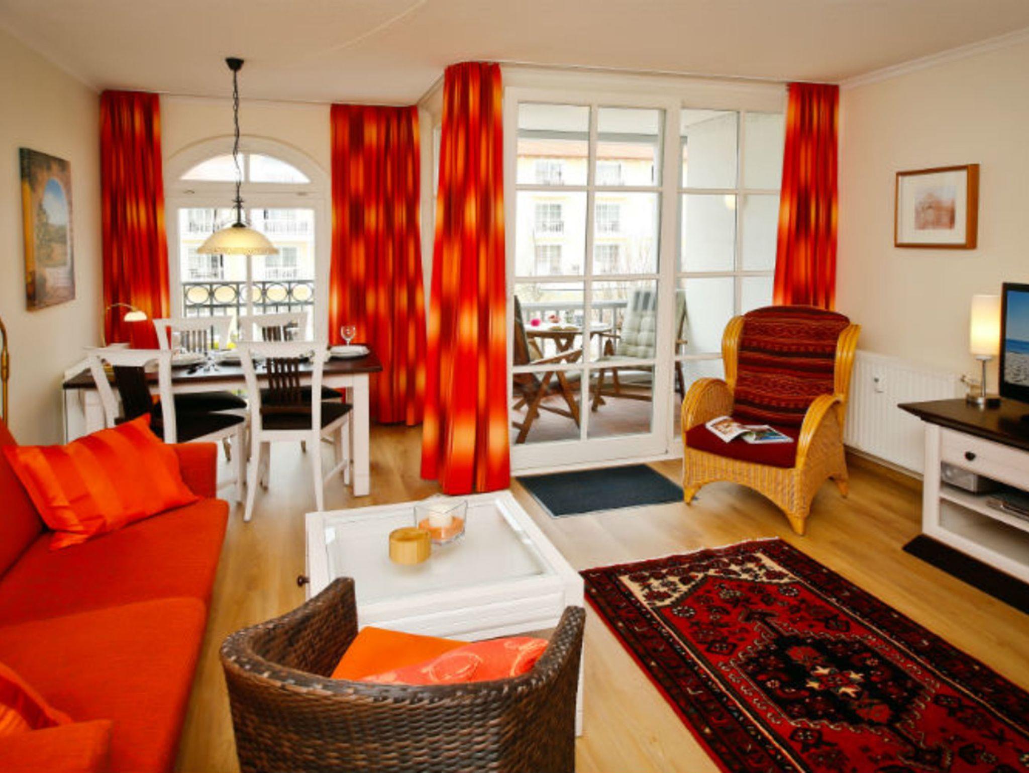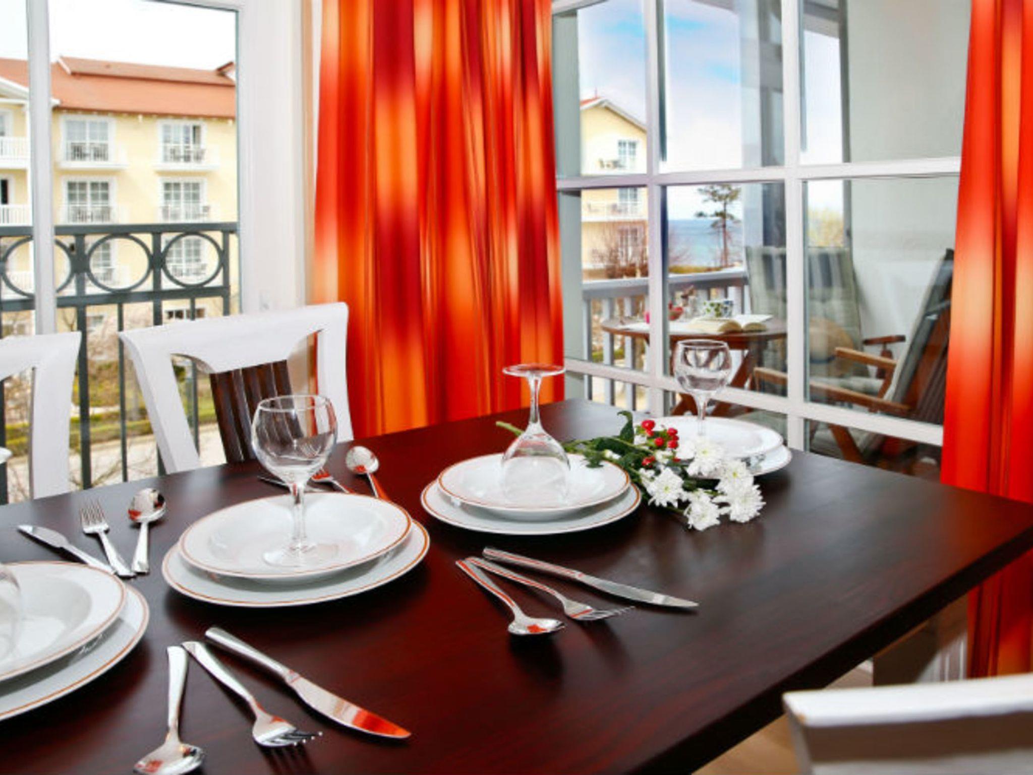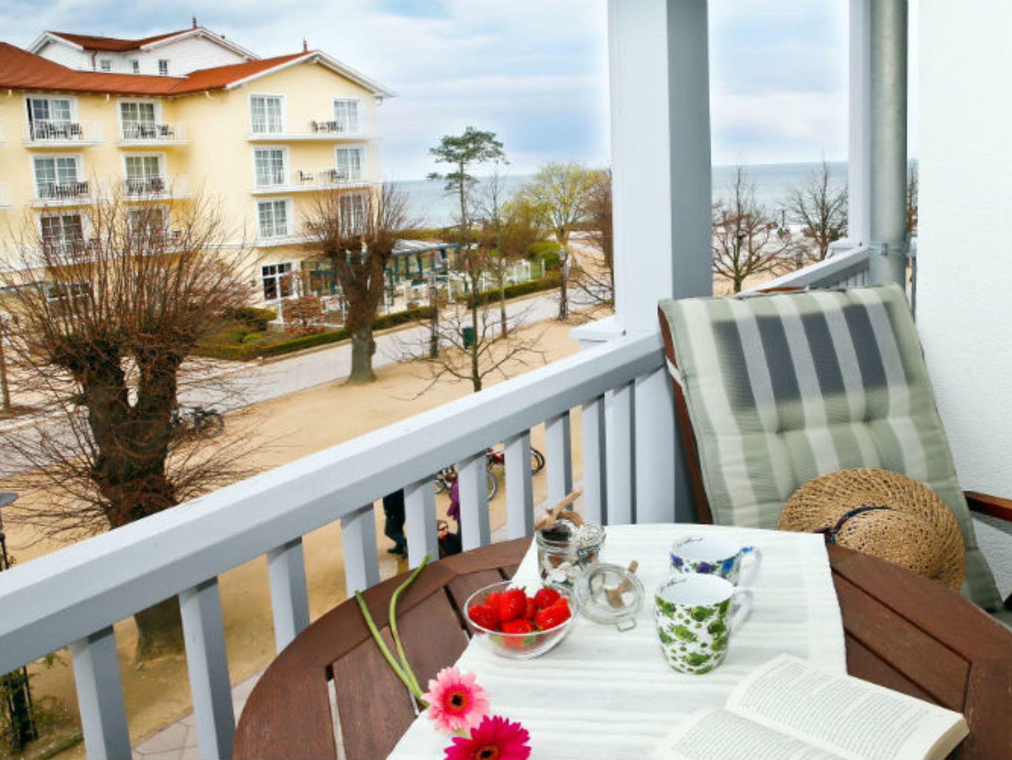 Modernes 2-Zimmer-Appartement in Kühlungsborn mit möbliertem Balkon und seitlichem Meerblick.