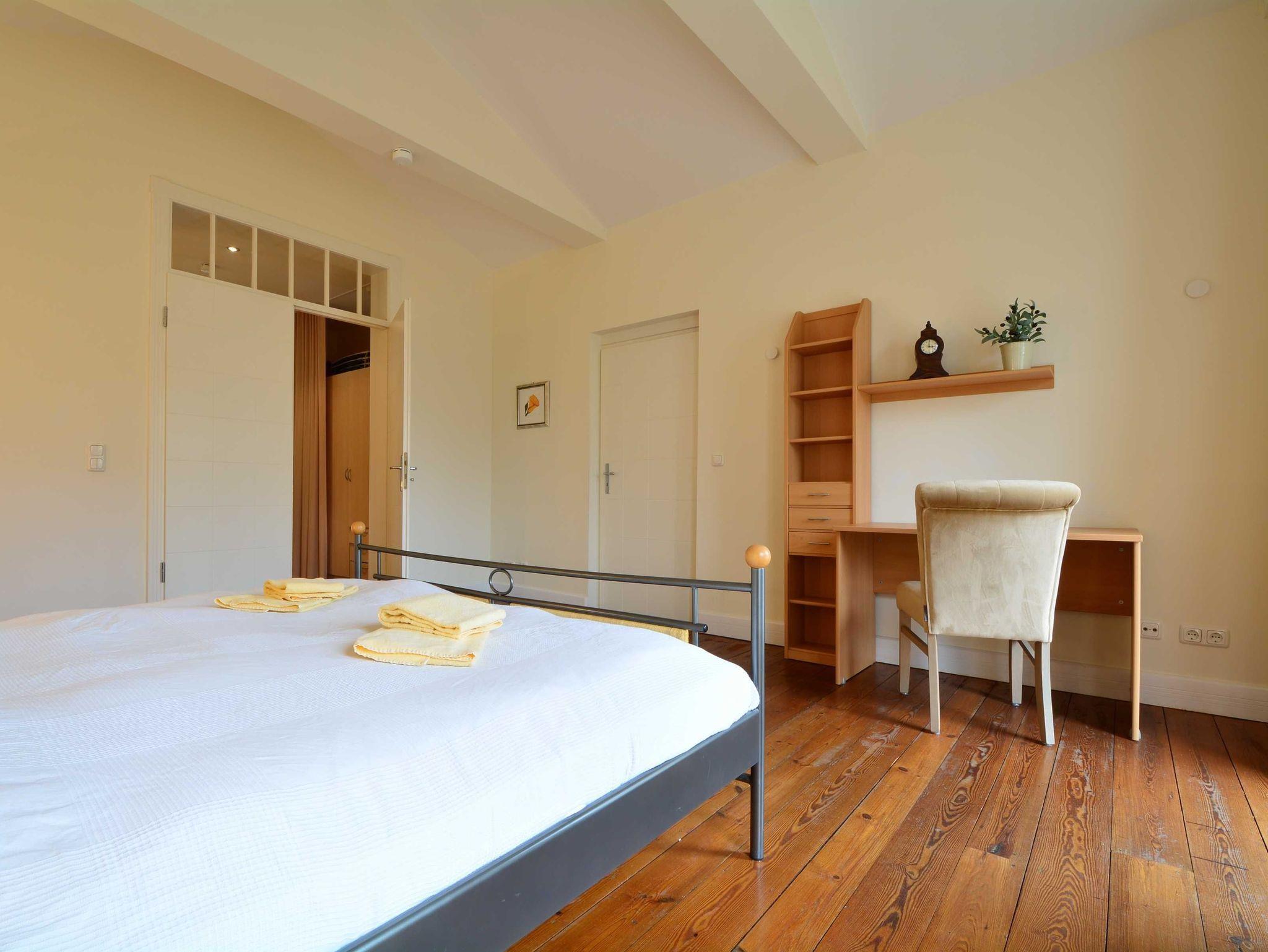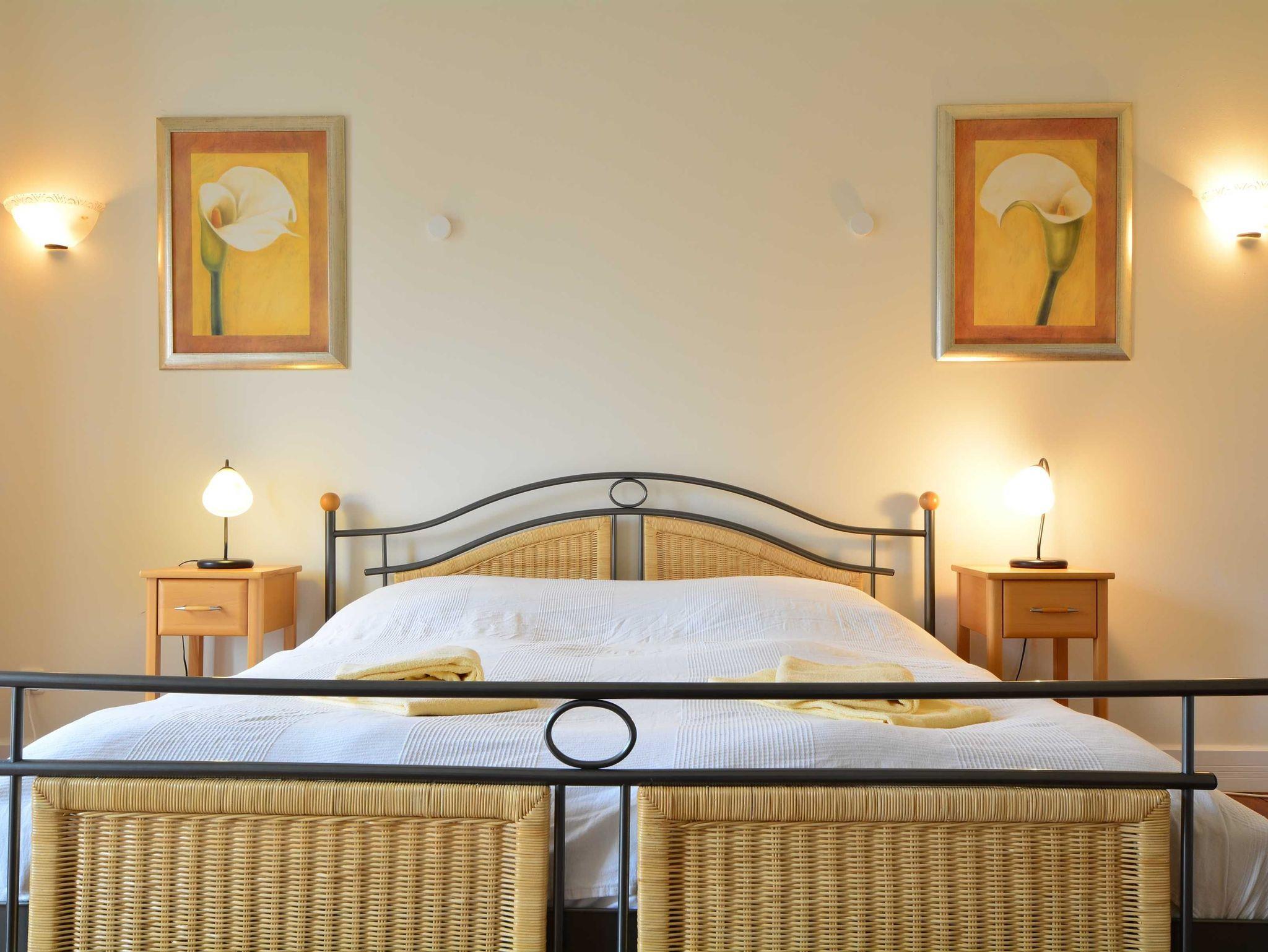Die Wohnung verfügt über zwei Schlafzimmer, die jeweils mit einem Doppelbett ausgestattet sind und über ein eigenes separates Badezimmer verfügen. Das nach Norden ausgerichtete Schlafzimmer bietet zusätzlich einen Zugang zum Balkon und ist mit einem kleinen Schreibtisch versehen. Der großzügige Kleiderschrank befindet sich am anschließenden Flur und das dazugehörige Bad verfügt über eine Dusche und WC. Im nach Süden ausgerichteten Schlafzimmer befinden sich ein Kleiderschrank sowie der Zugang zum Wannenbad.