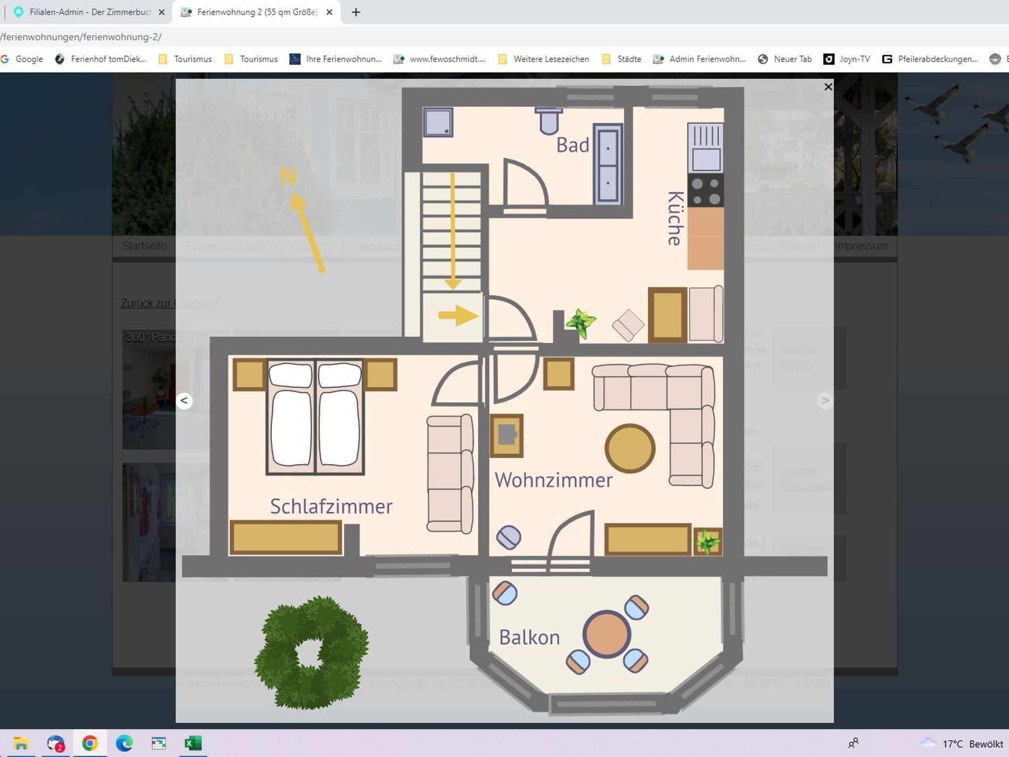 In einem Ferienhaus im OG liegende separate Ferienwohnung von ca. 55 qm Größe, bestehend aus Wohnzimmer mit Balkon, Schlafzimmer, Küche, Bad und Flur.