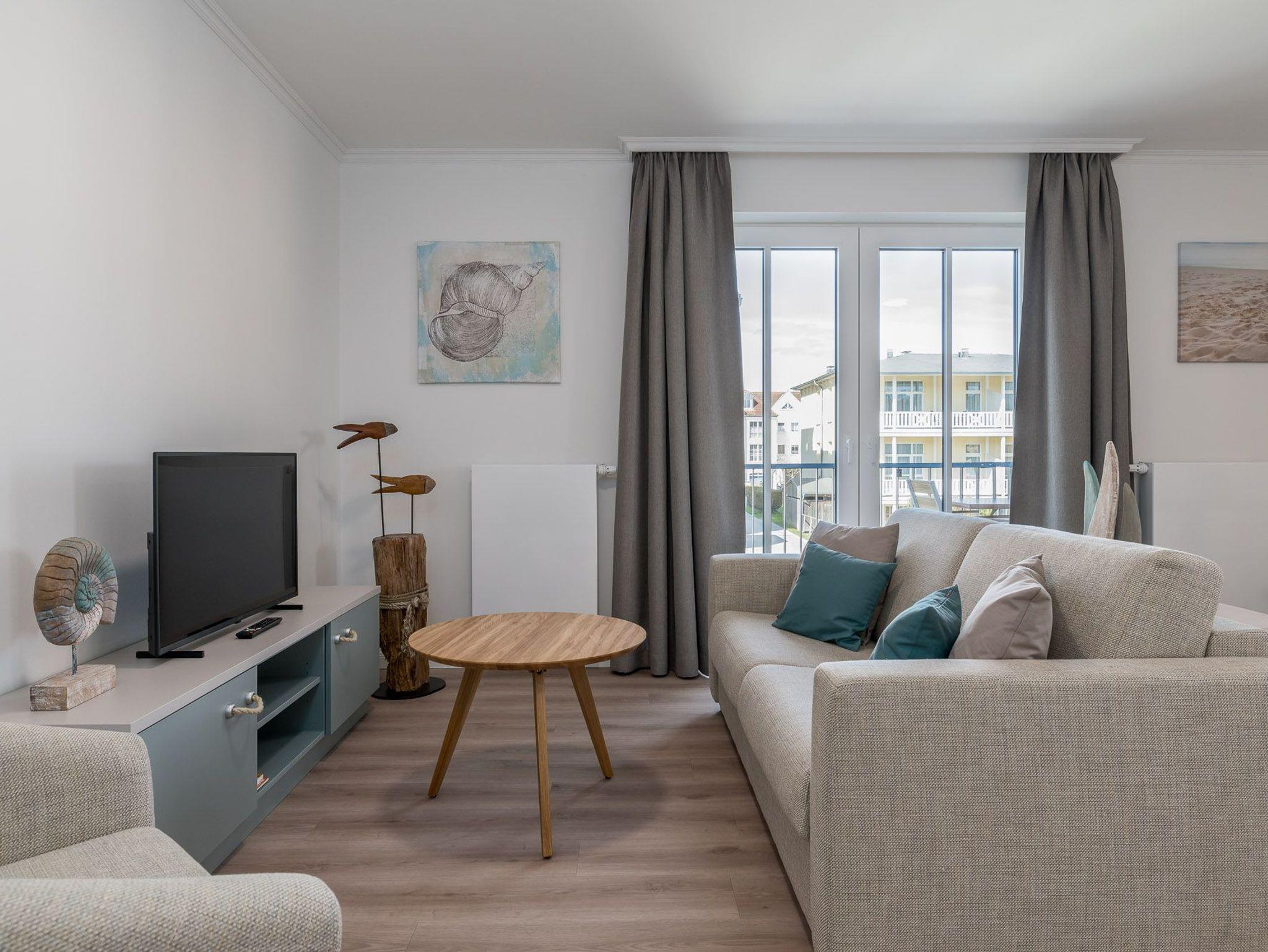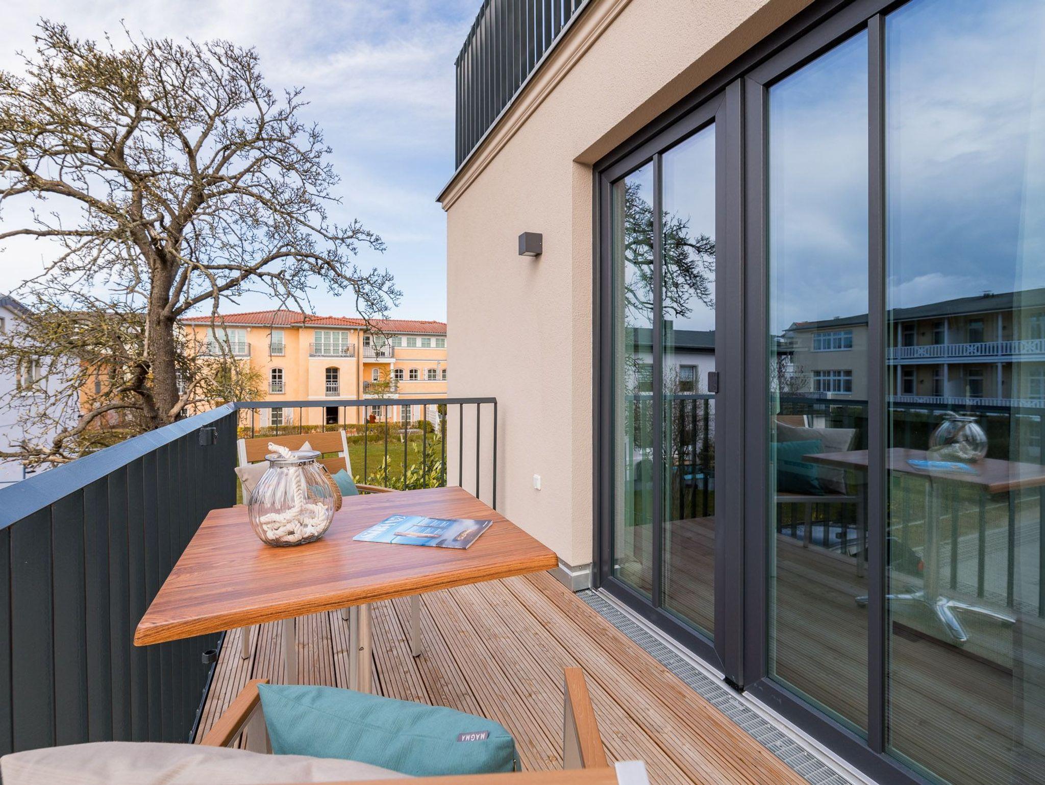 Das komfortabel eingerichtete Apartment liegt im ersten Stock und ist bequem über die Treppe oder den Aufzug zu erreichen. Es bietet mit seinen zwei Zimmern genügend Platz für 4 Personen. Außerdem verfügt es neben seiner Wohnfläche von ca. 60 qm, auch über einen nach Südwesten ausgerichteten Balkon. Dieser ist mit Balkonmöbeln und einem Sonnenschirm ausgestattet.