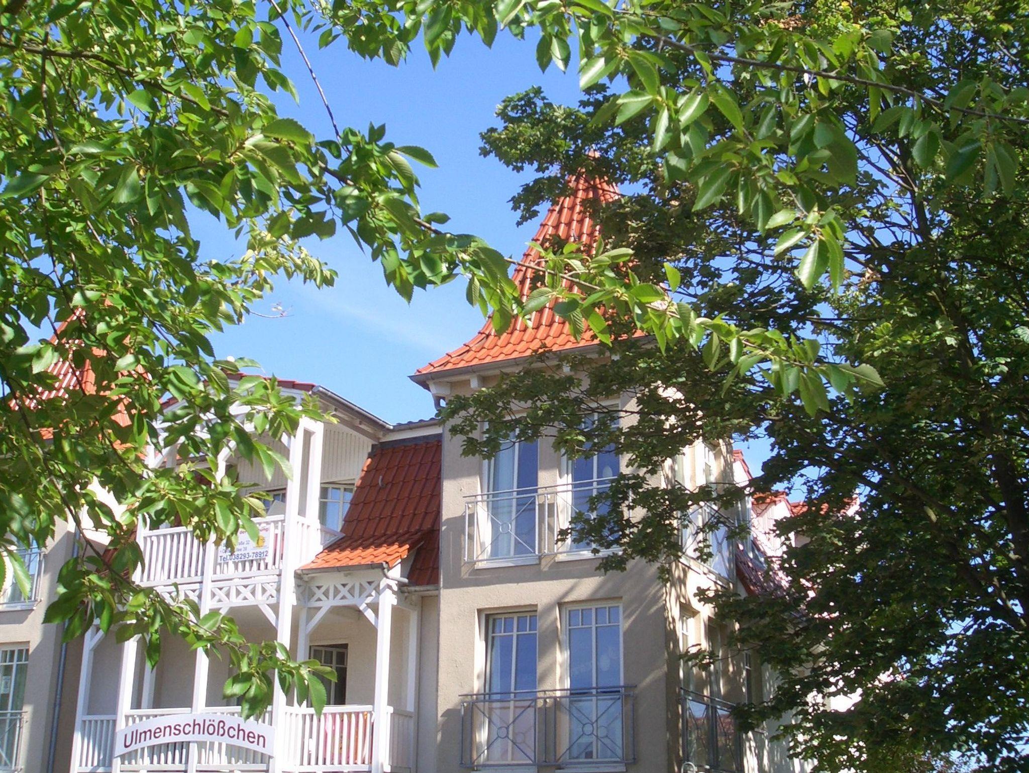 Das Ulmenschlösschen liegt in einer Seitenstraße neben der Strandstraße (Hauptstraße in Kühlungsborn-Ost) in unmittelbarer Nähe zum Stadtwald und der Bummelmeile.