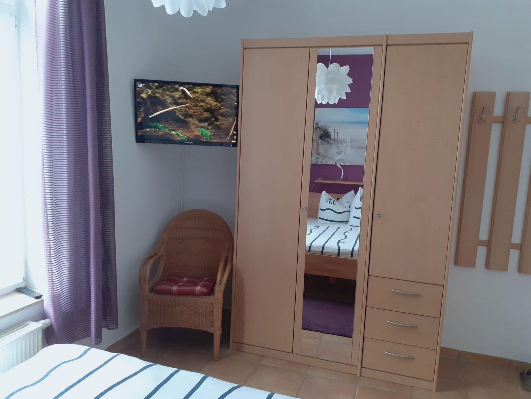 - 1. Schlafzimmer mit Doppelbett, Kleiderschrank und TV
