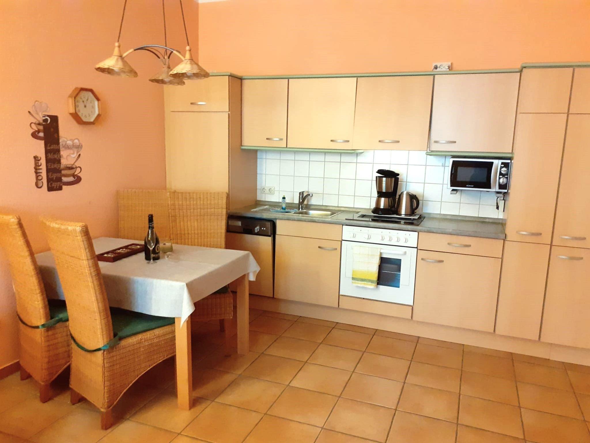 - Küche - Herd mit Backröhre, Mikrowelle, Kühlschrank mit Gefriermöglichkeit,