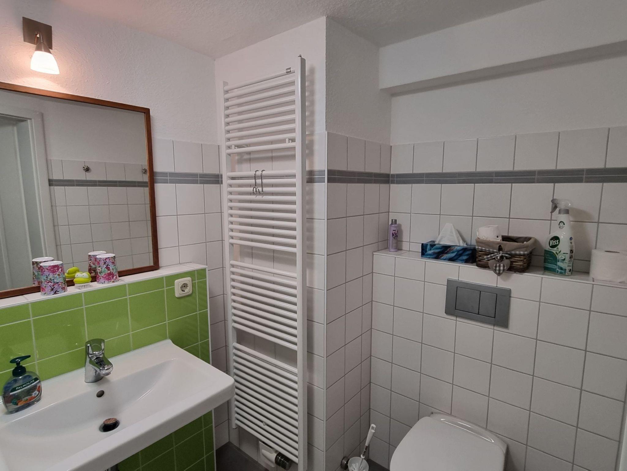 Das Badezimmer verfügt neben Waschtisch und WC, über eine Dusche mit normalem Einstieg.