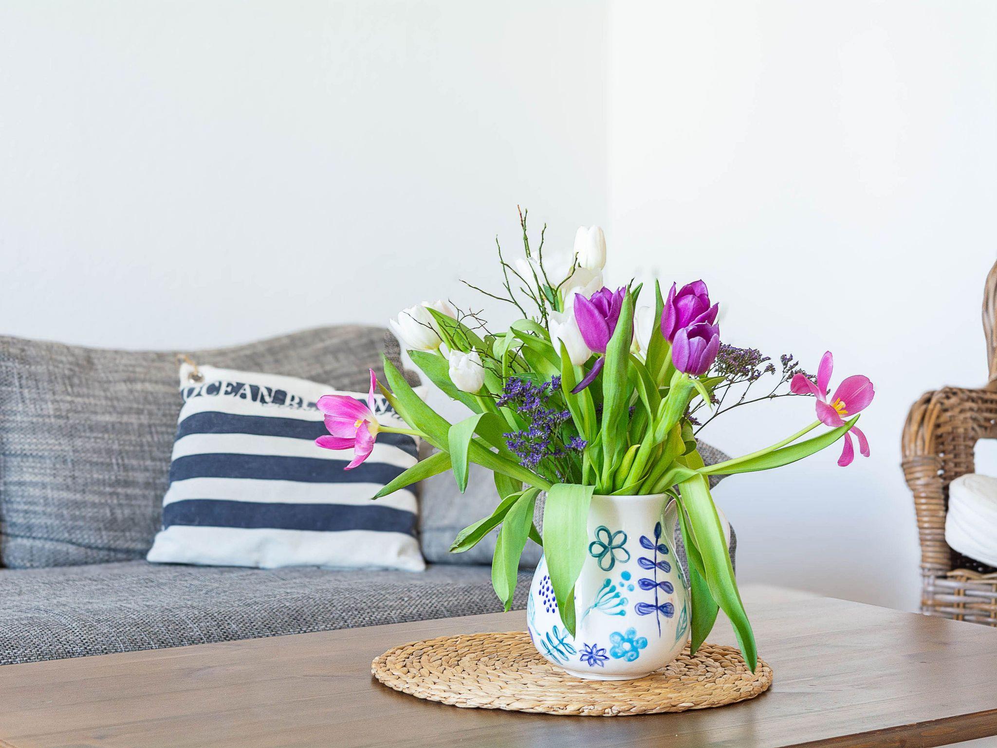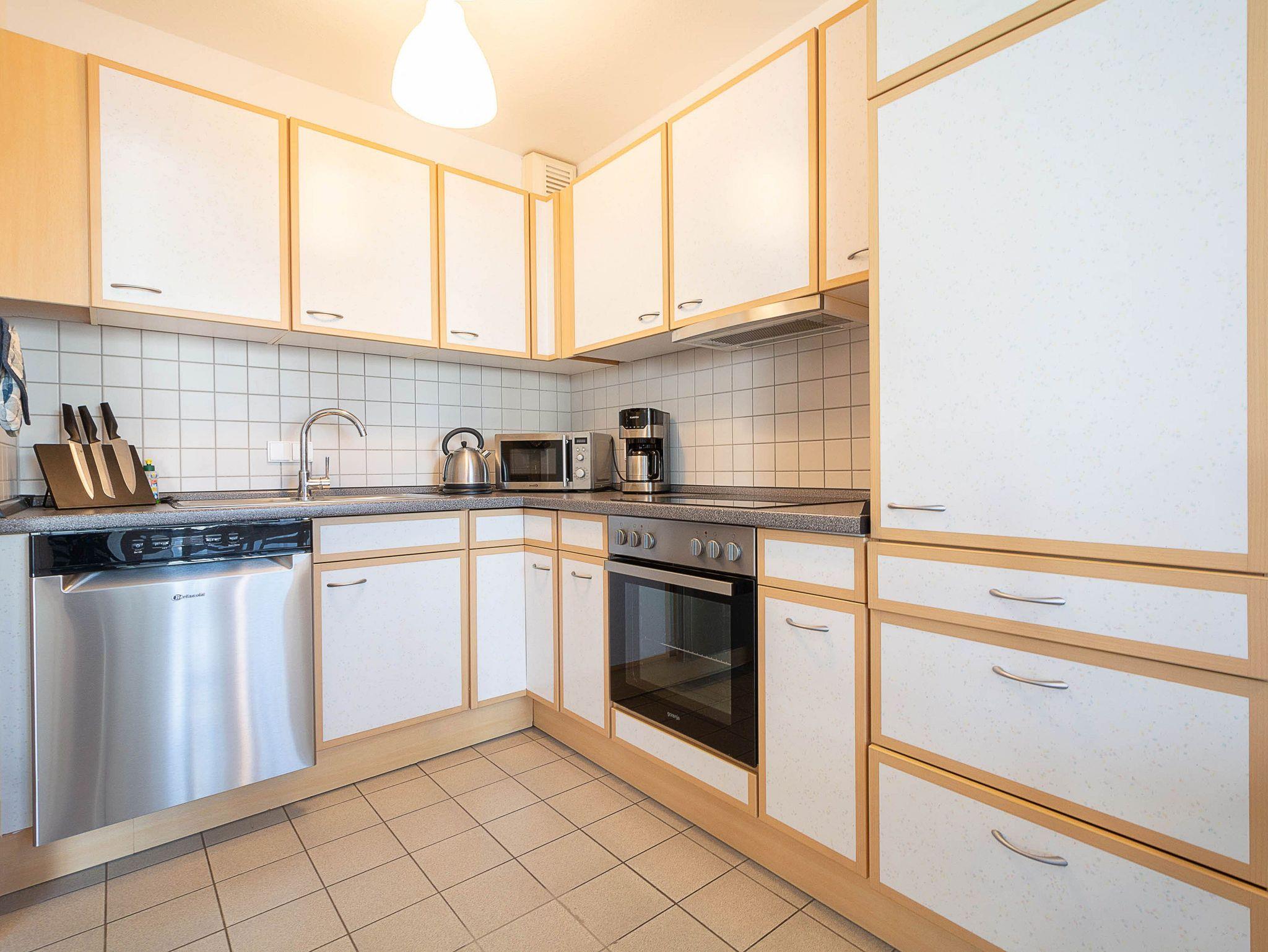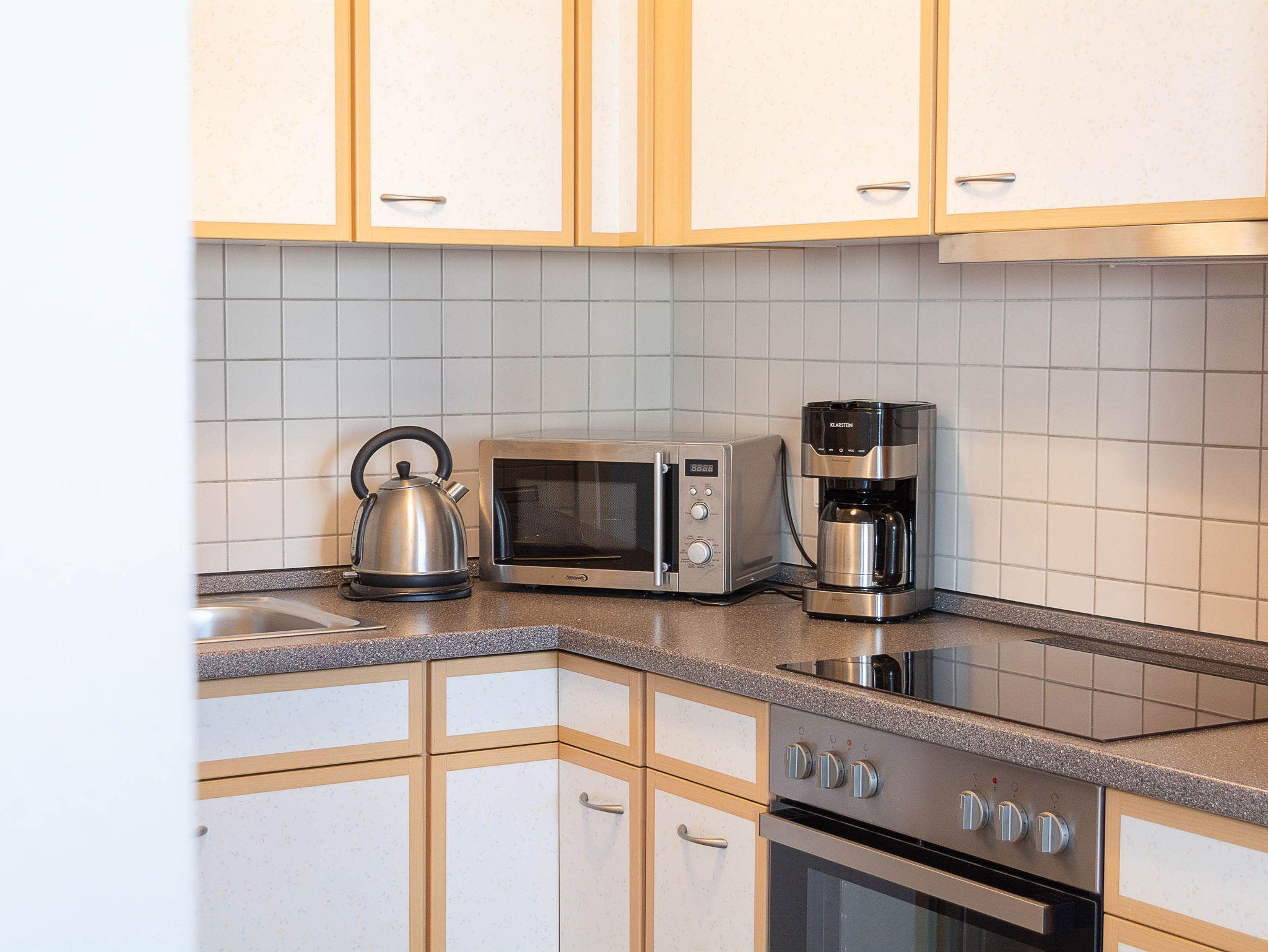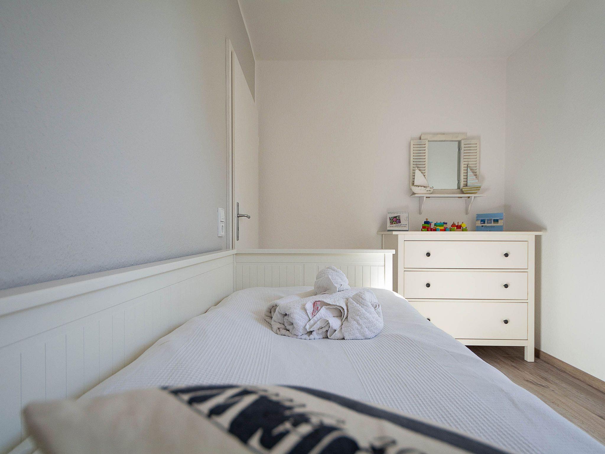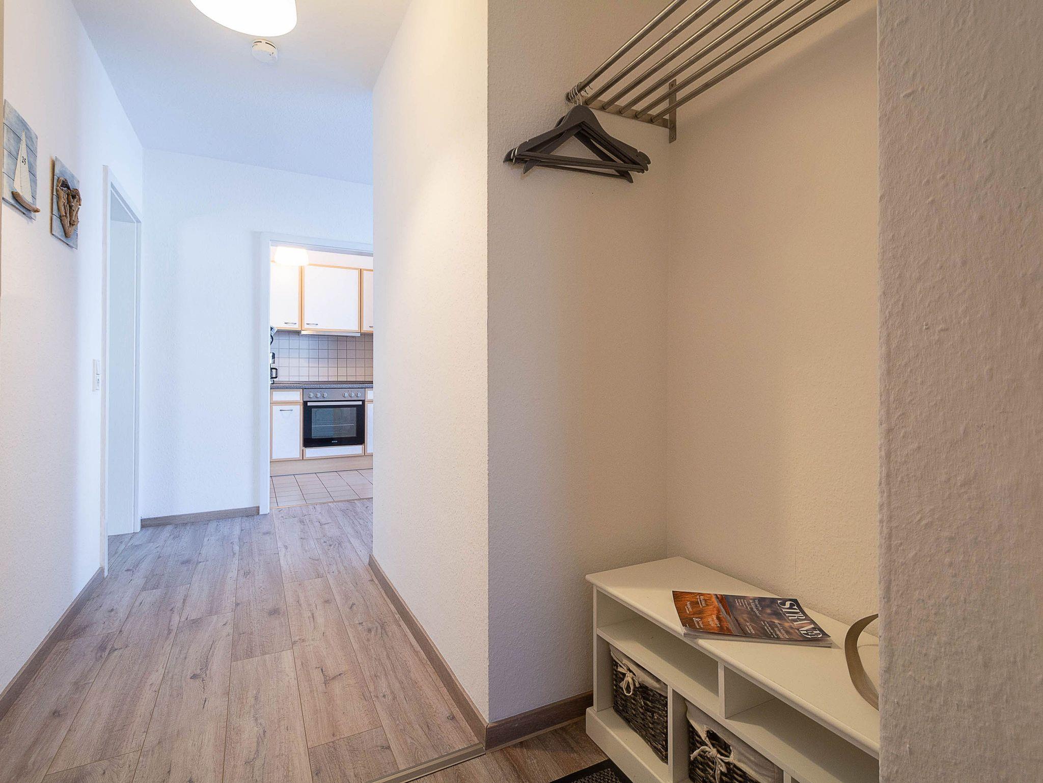 Ankommen und Wohlfühlen: Die liebevoll eingerichtete 3-Raum-Wohnung von 62qm Größe befindet sich im Erdgeschoss und empfängt Sie mit einem gemütlichen offenen Wohnbereich. Hier finden Sie eine bequeme Couchgarnitur vor sowie einen 31-Zoll-Flachbild-Fernseher und eine Musikanlage. Ein gemütlicher Esstisch mit 4 Stühlen lädt zum langen Frühstück und schönen gemeinschaftlichen Mahlzeiten ein. Von hier können Sie die möblierte West-Terrasse betreten, welche im Sommer die warme Abendsonne für Sie einfängt. Eine optisch vom Wohnbereich getrennte Küchenzeile mit allen wichtigen Küchengeräten (4-Platten-Herd, Ofen, Geschirrspüler, Mikrowelle, Kaffeemaschine und Wasserkocher, Kühlschrank mit kleinem Tiefkühlfach) schließt sich dem Sitzbereich an. Das große Schlafzimmer mit Doppelbett /180 cm x 200 cm) und großem Kleiderschrank bietet Ihnen den Zugang zur möblierten Ost-Terrasse, auf der Sie Ihr Frühstück in der Morgensonne genießen können. Im kleinen Schlafzimmer direkt nebenan befindet sich ein ausziehbares Kojenbett (80x200m / ausgezogen 160x200m) und eine Kleiderkommode. Das Bad ist ausgestattet mit Dusche und WC.