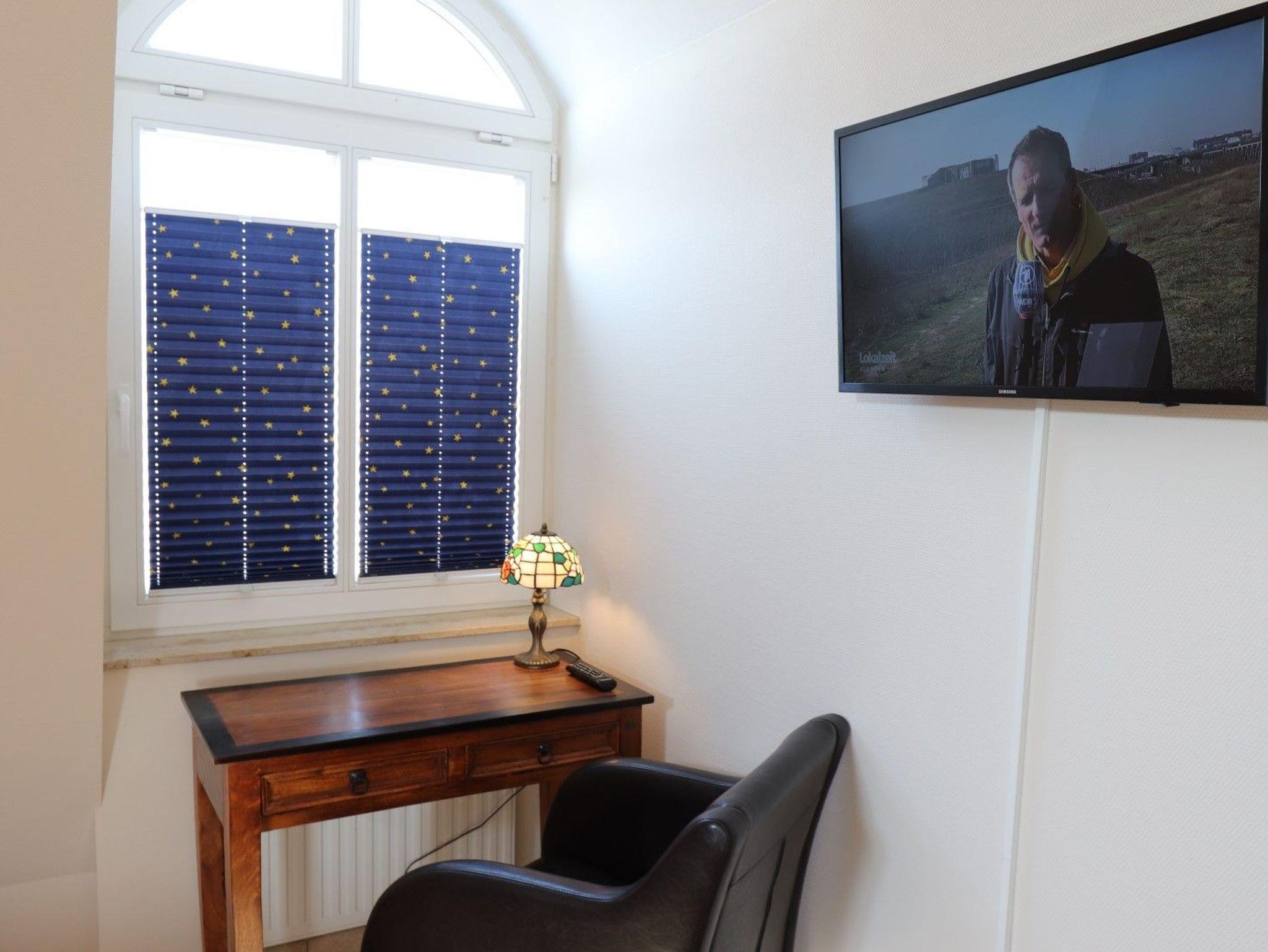 Im Wohnzimmer können Sie auf einer bequemen, ausziehbaren Couch den Abend ausklingen lassen.