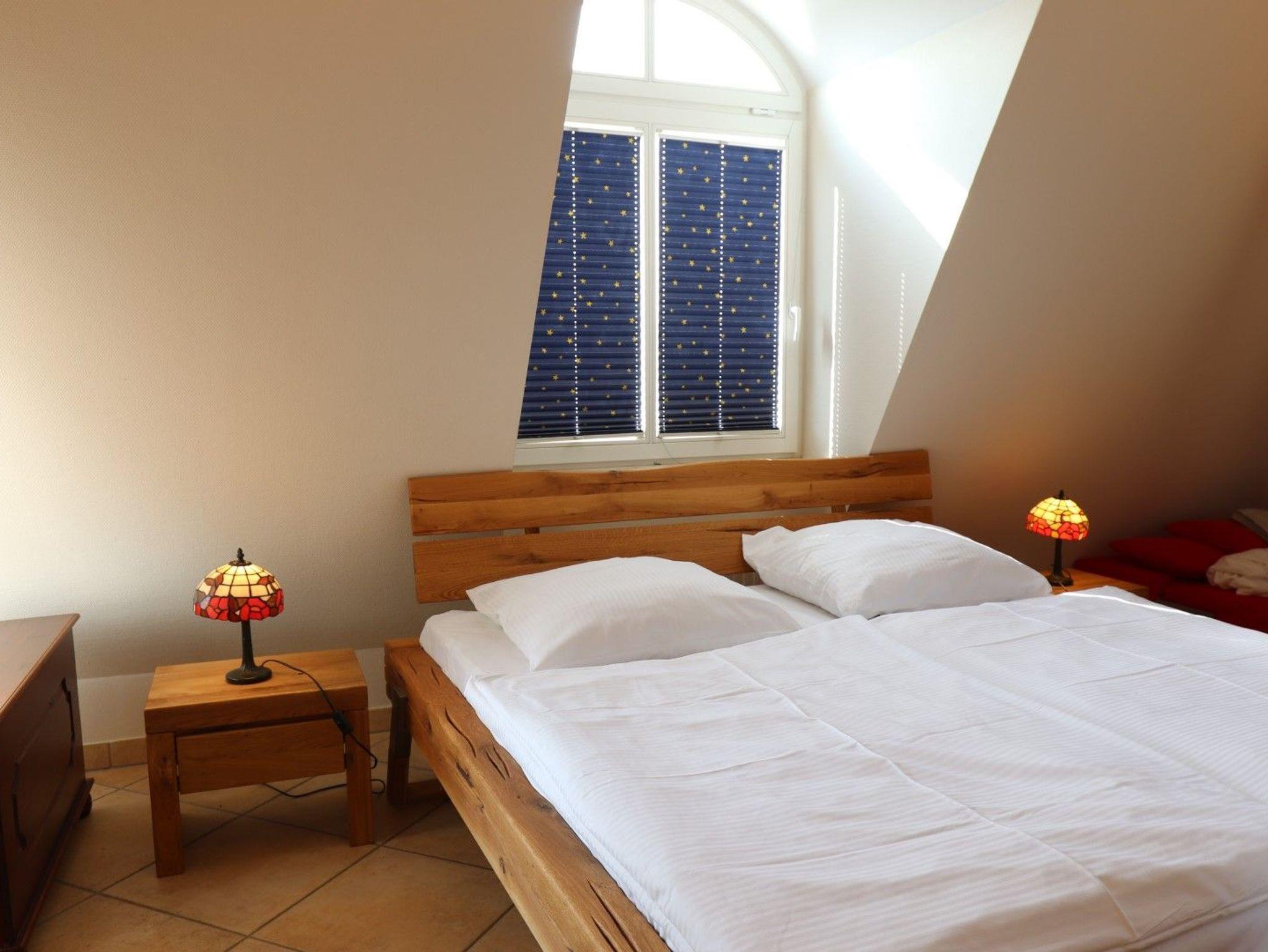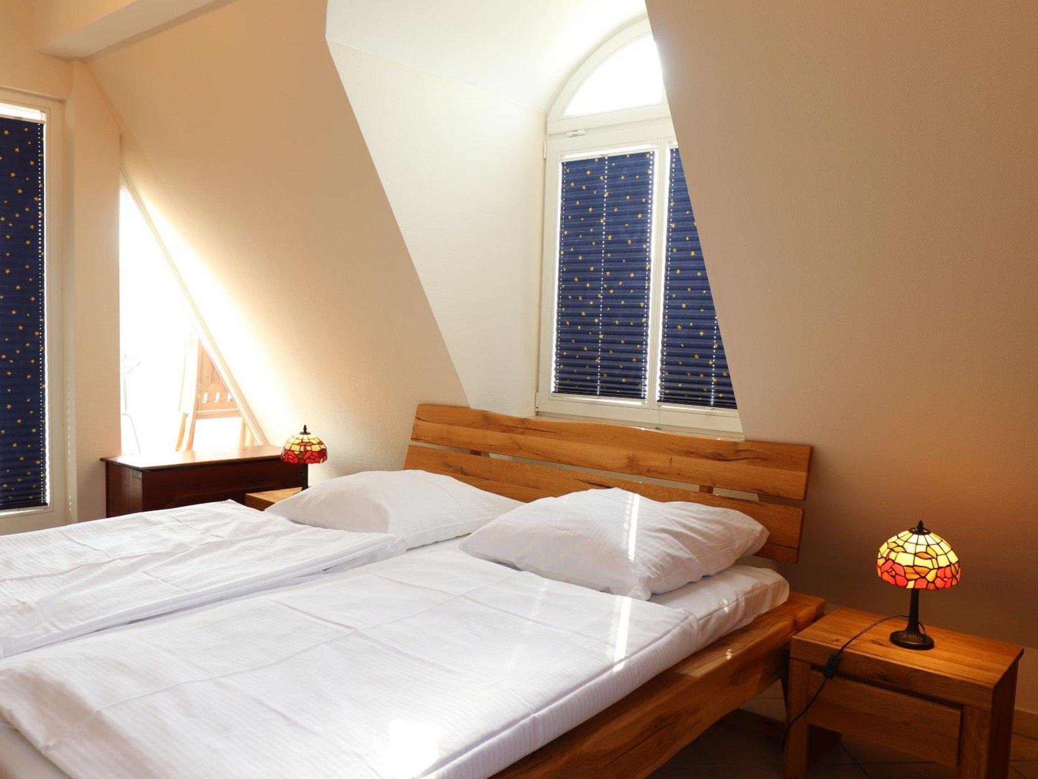 Im Schlafzimmer können Sie in einem Doppelbett von dem am Tag Erlebten träumen.