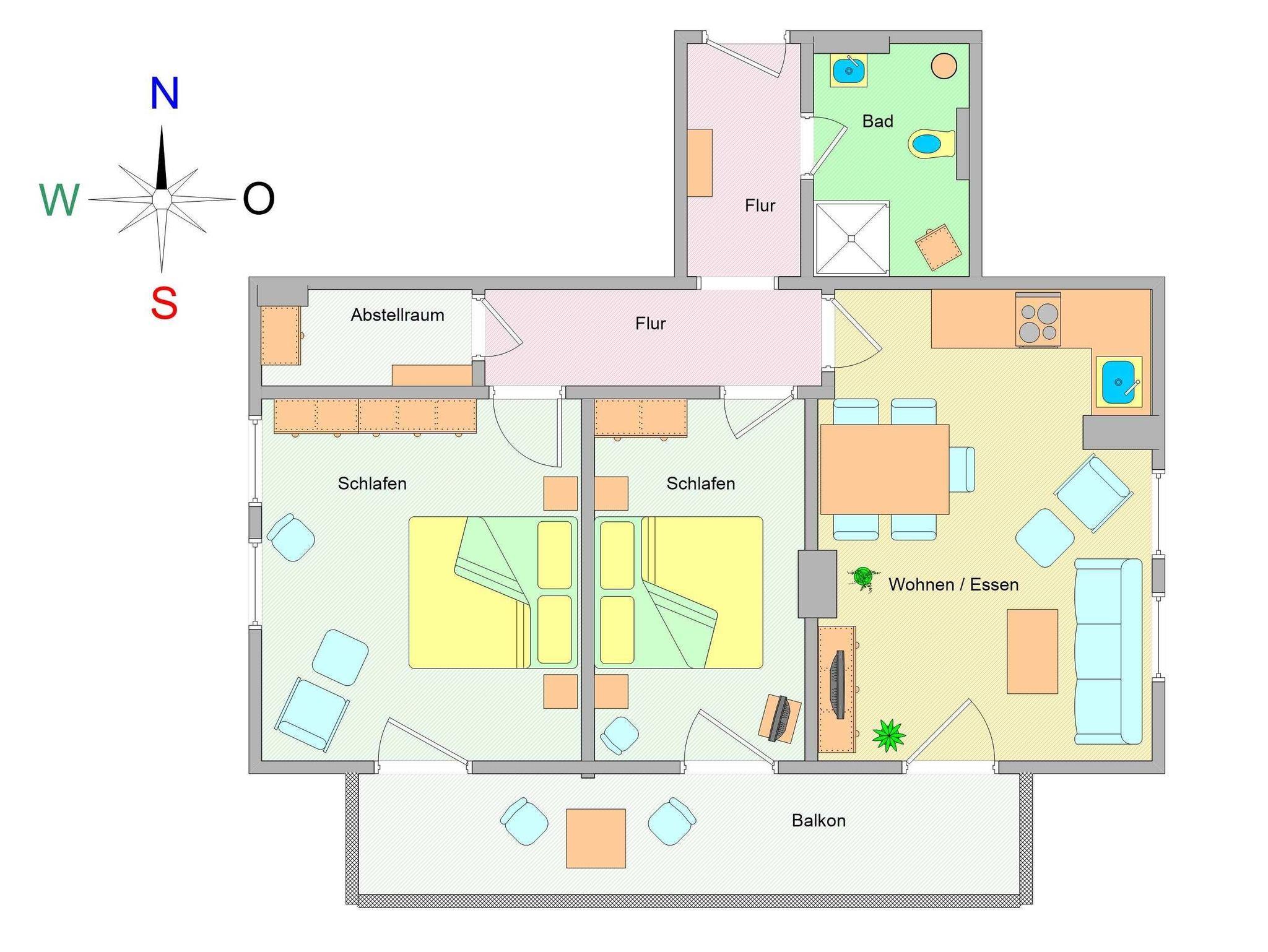 FREUNDLICHE HELLE 3-RAUM-FEWO FÜR 2-4 PERS. MIT SÜDBALKON