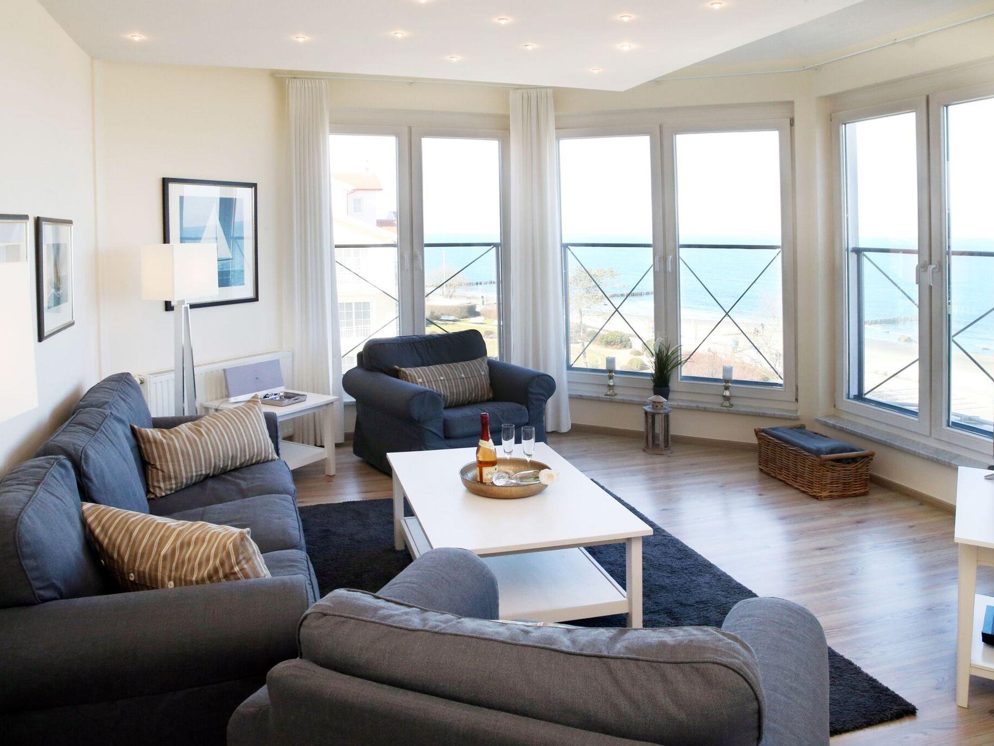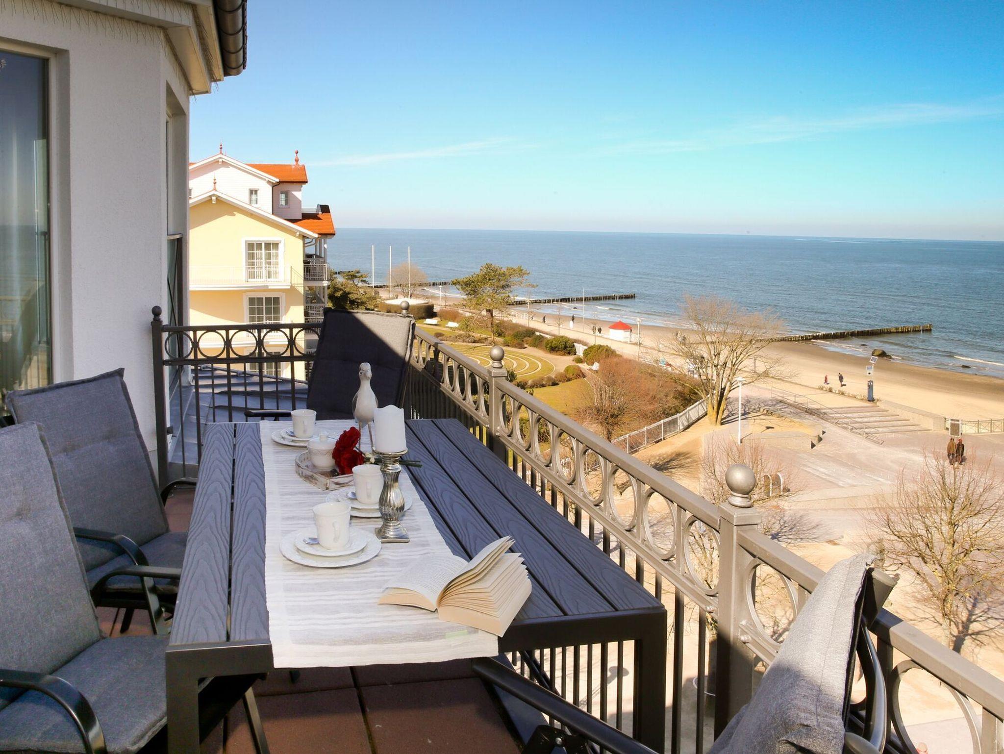 Modernes 3-Zimmer-Appartement in Kühlungsborn mit direktem Meerblick und möbliertem Balkon.