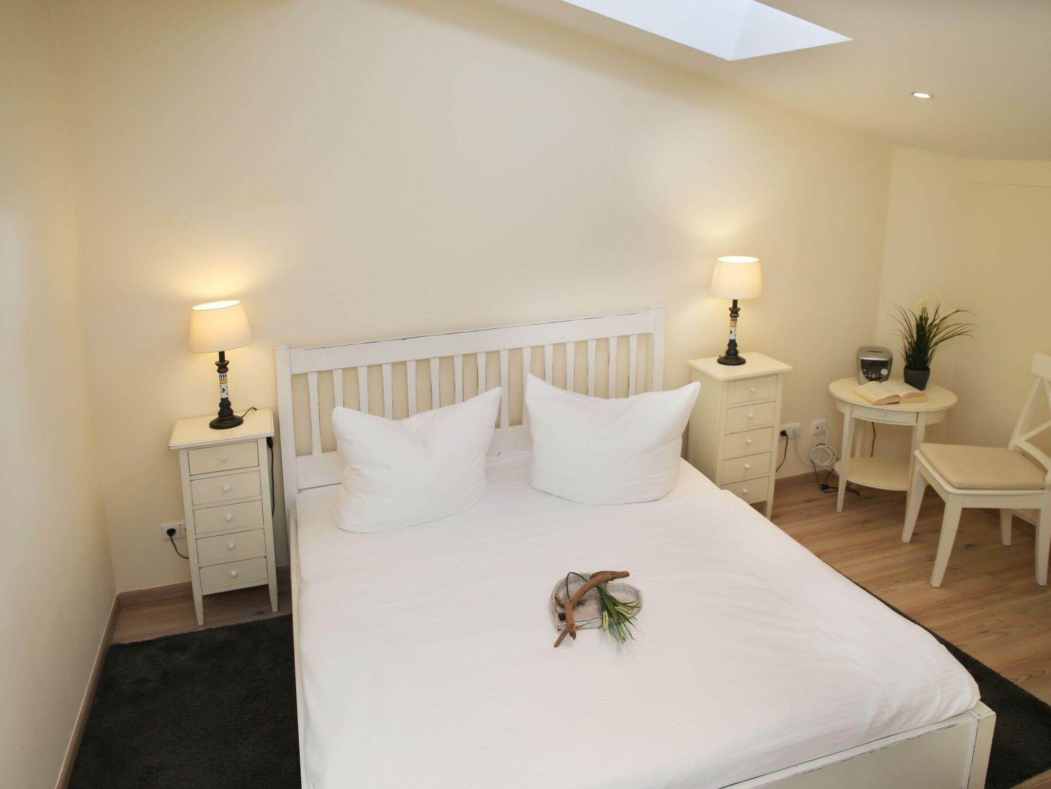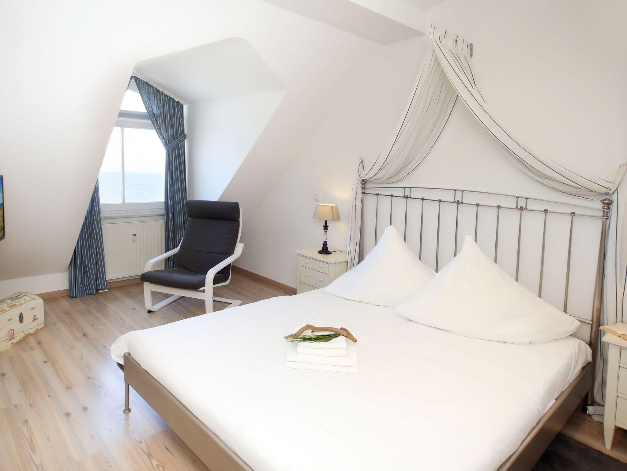 - 1. Schlafzimmer mit Doppelbett (1.60m), Kleiderschrank und TV (direkter Ostseeblick)