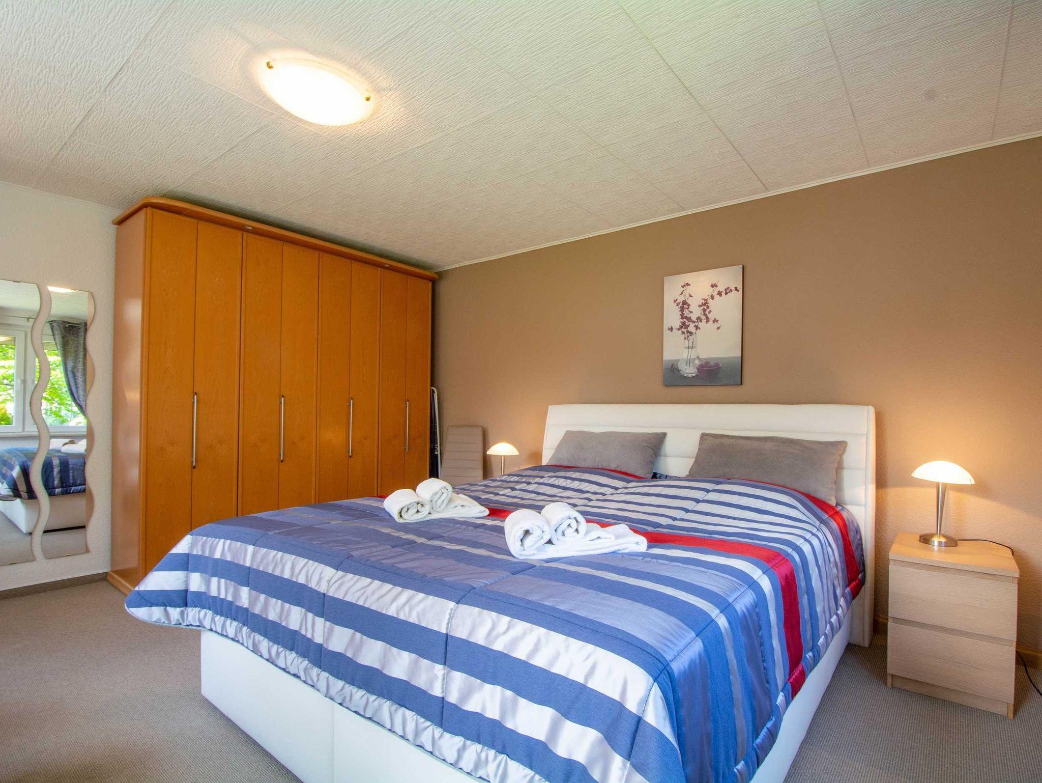 Der ganzjährig nutzbare Bungalow wurde zuletzt im Herbst 2014 renoviert. Er hat eine Grundfläche von ca. 43 qm, verfügt über Wohnbereich mit Pantry, Schlafzimmer mit Doppelbett und Schlafcouch sowie einen Sanitärbereich mit Dusche. Zur Ausstattung gehören Sat-TV und Radio. Vom Wohnzimmer aus gelangen Sie auf die zum Süden liegende 24 qm große Terrasse, die mit Gartenmöbel und Sonnenschirm versehen ist. Hier, mitten im Grünen, können Sie sich entspannen und erholen. Ein PKW-Stellplatz ist auf dem Grundstück vorhanden und kann kostenfrei genutzt werden. In dieser Nichtraucherwohnung sind Haustiere nicht gestattet.