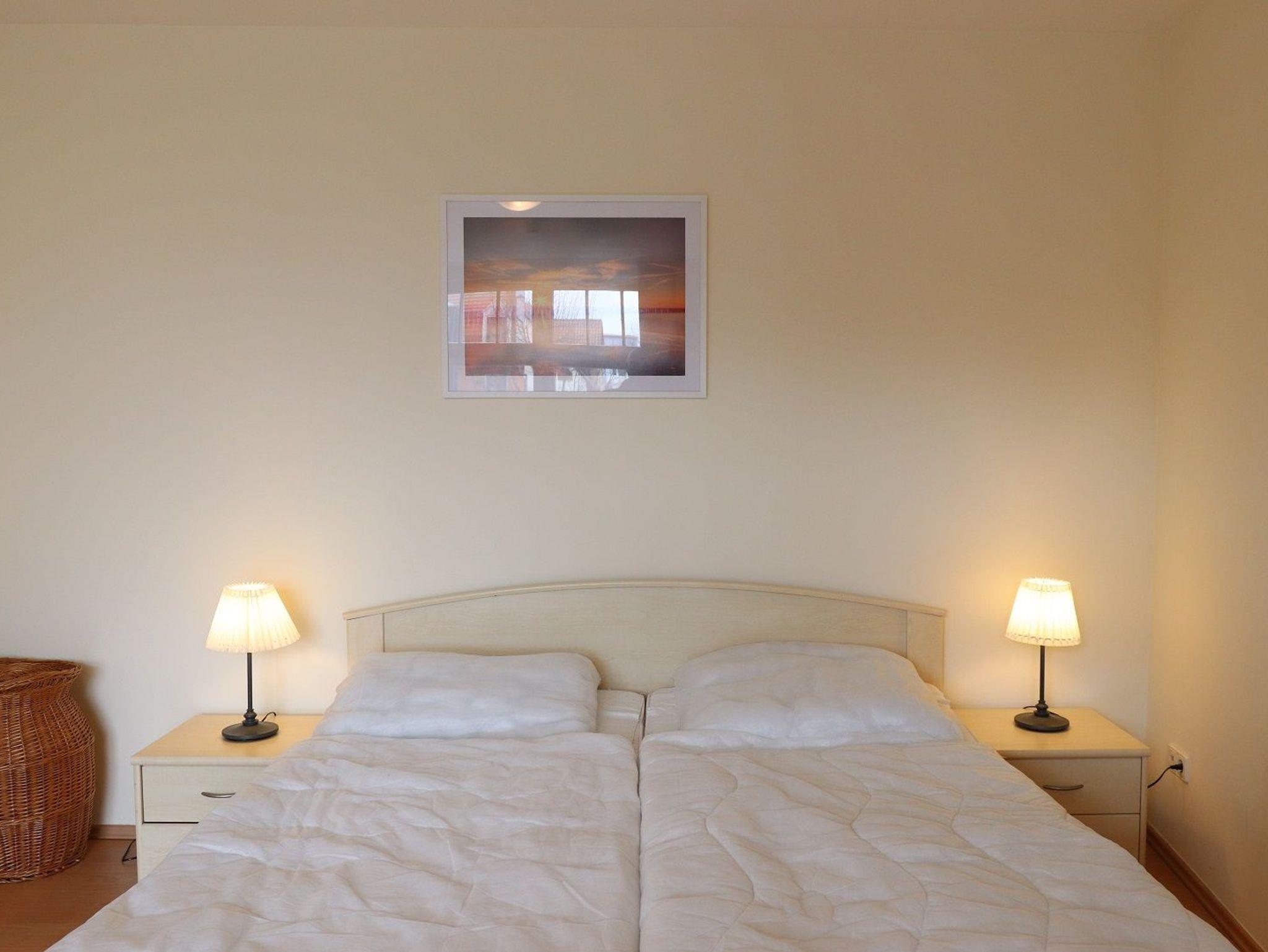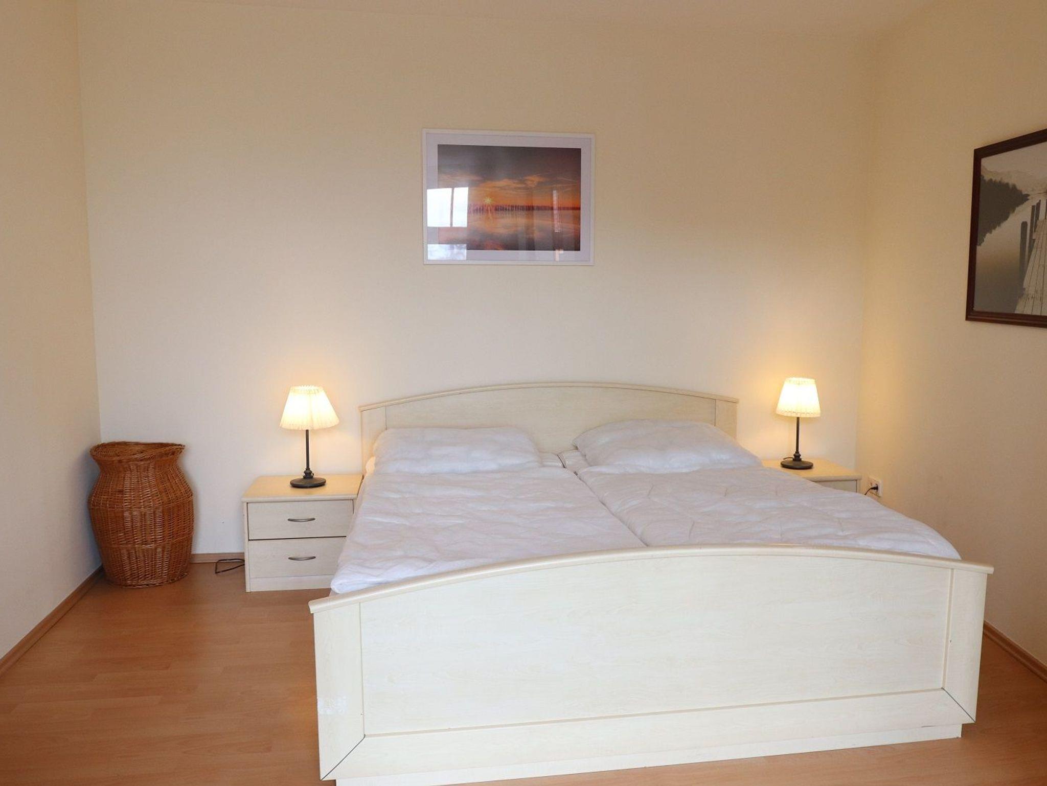 Das größere Schlafzimmer ist mit einem Doppelbett ausgestattet, das Kleinere mit zwei Einzelbetten.