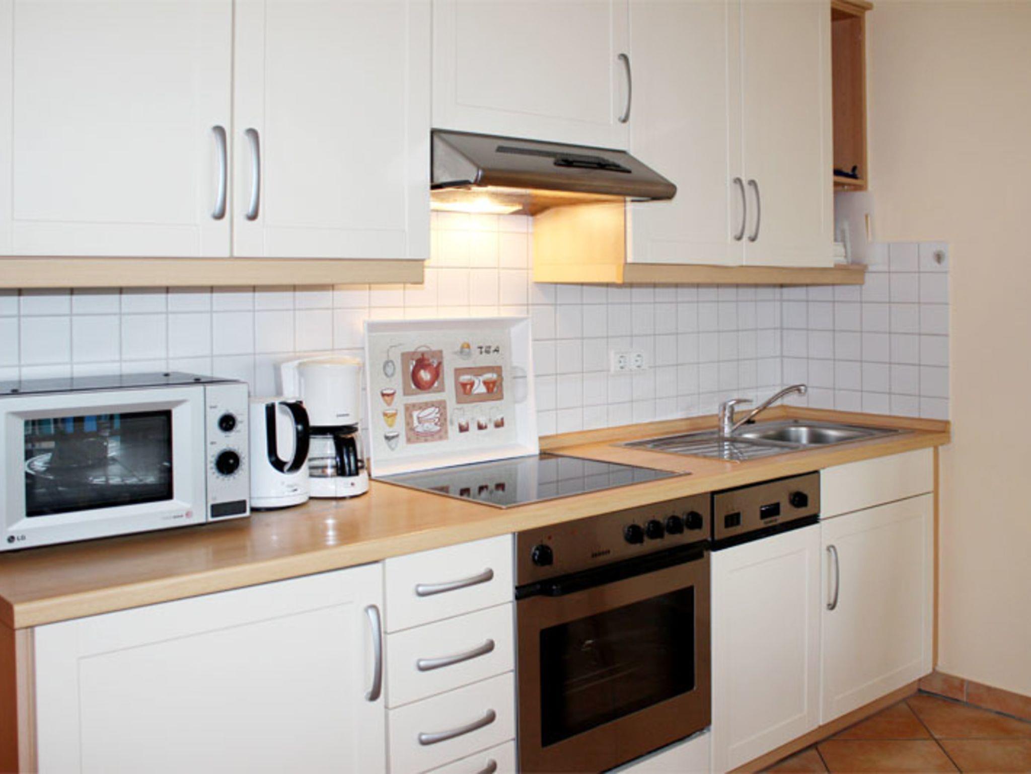 - Küche - Herd mit Backröhre, Mikrowelle, Kühlschrank und Geschirrspüler