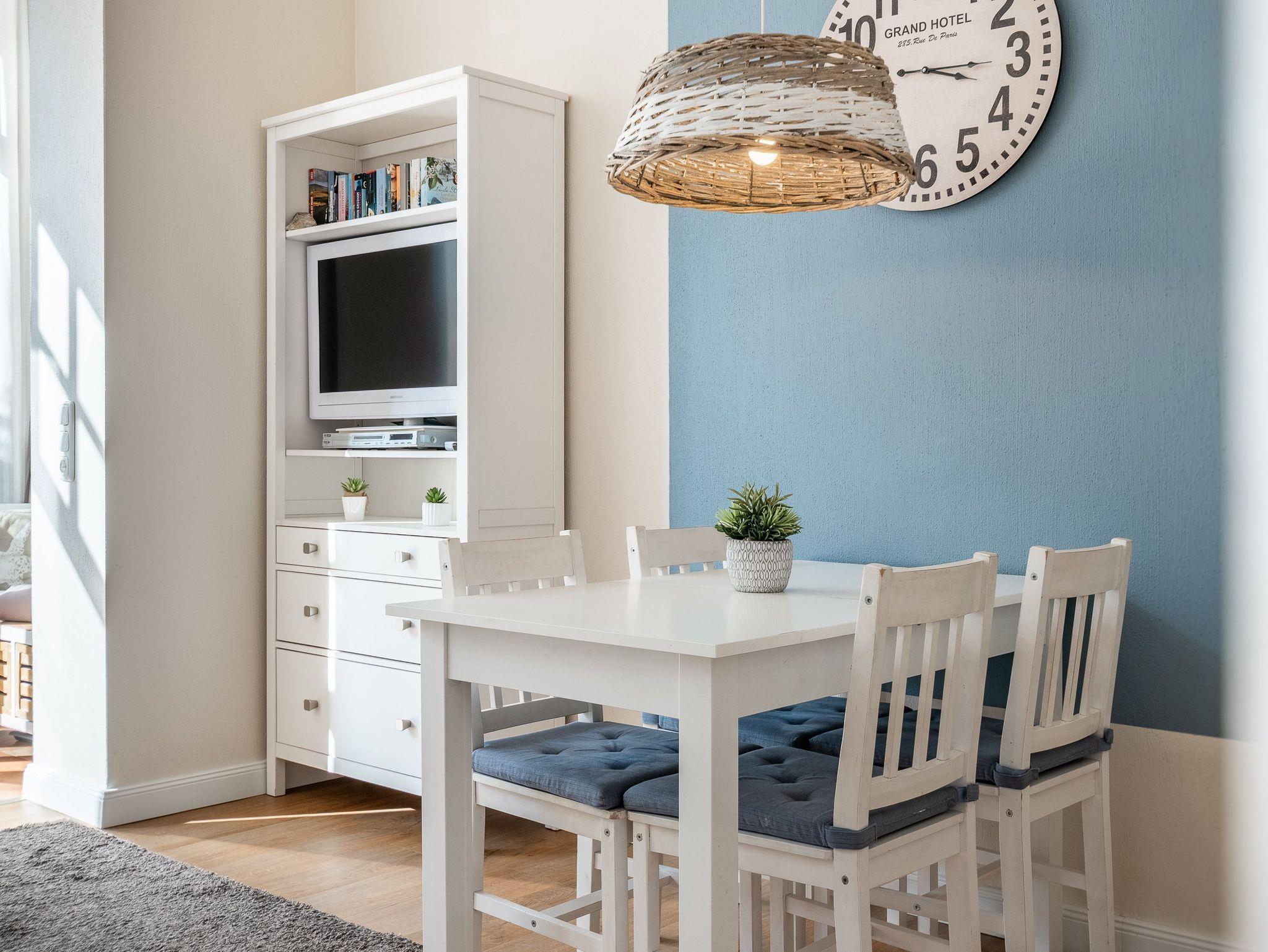 Für ganz kleine Ostsee-Besucher befinden sich ein Hochstuhl sowie ein Kinderreisebett in der Wohnung und für die großen Gäste steht Internetzugang per WLAN kostenlos zur Verfügung (Das WLAN ist ausschließlich für die Verwendung von Social Media und den Austausch von Bildern mit Familie und Freunden gedacht. Die Nutzung zum Streamen von Filmen ist nicht vorgesehen)