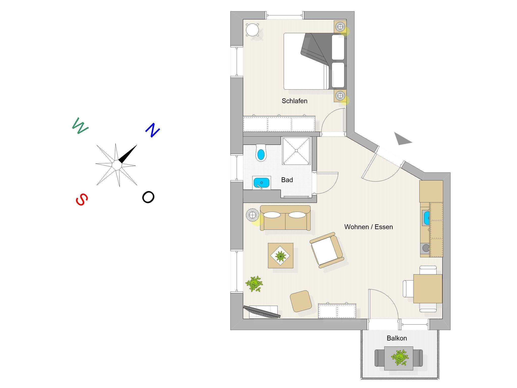 HOCHWERTIGE 2-RAUM-FEWO FÜR 2 PERSONEN MIT SÜD-OST-BALKON