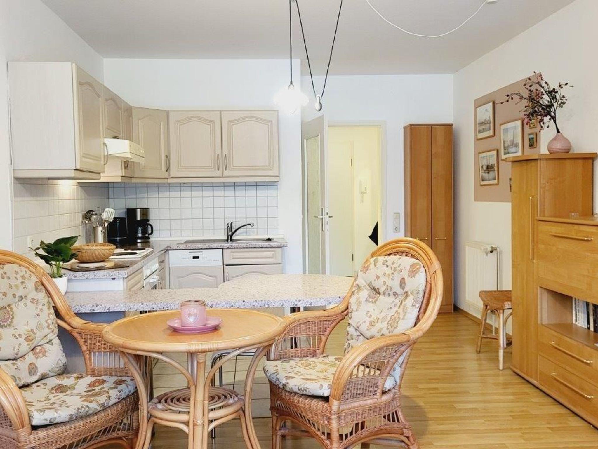 Gemütliches 1-Zimmer-Appartement in Kühlungsborn, 300 m vom Strand und Yachthafen entfernt, mit Balkon und Tiefgaragenplatz.