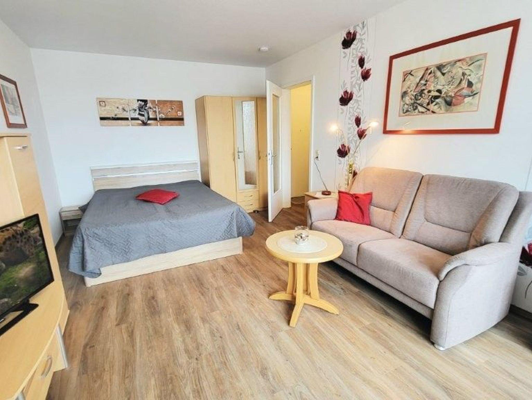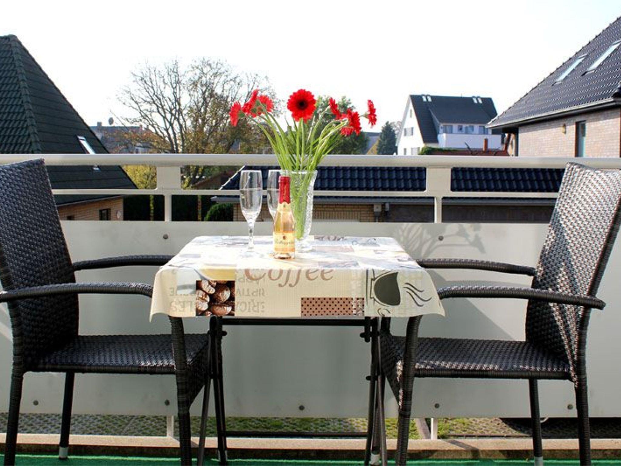Gemütliches 1-Zimmer-Appartement mit möbliertem Südbalkon in Kühlungsborn-Ost, inklusive Tiefgaragenstellplatz und kostenfreiem WLAN.