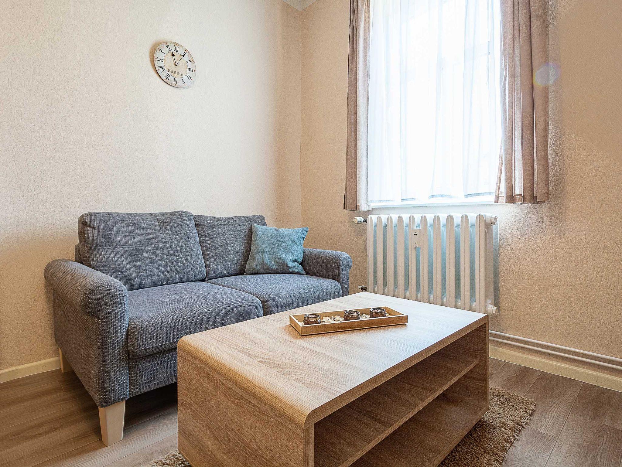 Die liebevoll eingerichtete 2-Raum-Ferienwohnung ist 45qm groß, bietet Platz für bis zu 2 Personen und befindet sich im Erdgeschoss eines Mehrfamilienhauses im Ostseebad Kühlungsborn. Die helle freundliche Wohnung verfügt über ein Wohnzimmer mit gemütlicher Couchgarnitur, 32-Zoll-Flachbild-TV und Blueray-Player. Die separate Küche mit kleinem Esstisch ist ausgestattet mit allen wichtigen Küchengeräten und Utensilien, die Sie für Ihren Urlaub benötigen, wie bspw. Herd mit Backofen und Dunstabzugshaube, Geschirrspüler, Kühlschrank mit Gefrierfach, Wasserkocher, Kaffeemaschine und Toaster. Das gemütliche Schlafzimmer mit Doppelbett (180 cm x 200 cm) und großem Kleiderschrank sowie das moderne Bad mit Dusche und WC runden das Gesamtbild dieser Wohnung ab. Eine kleine Terrasse mit Sitzmöglichkeiten ist ebenfalls vorhanden.