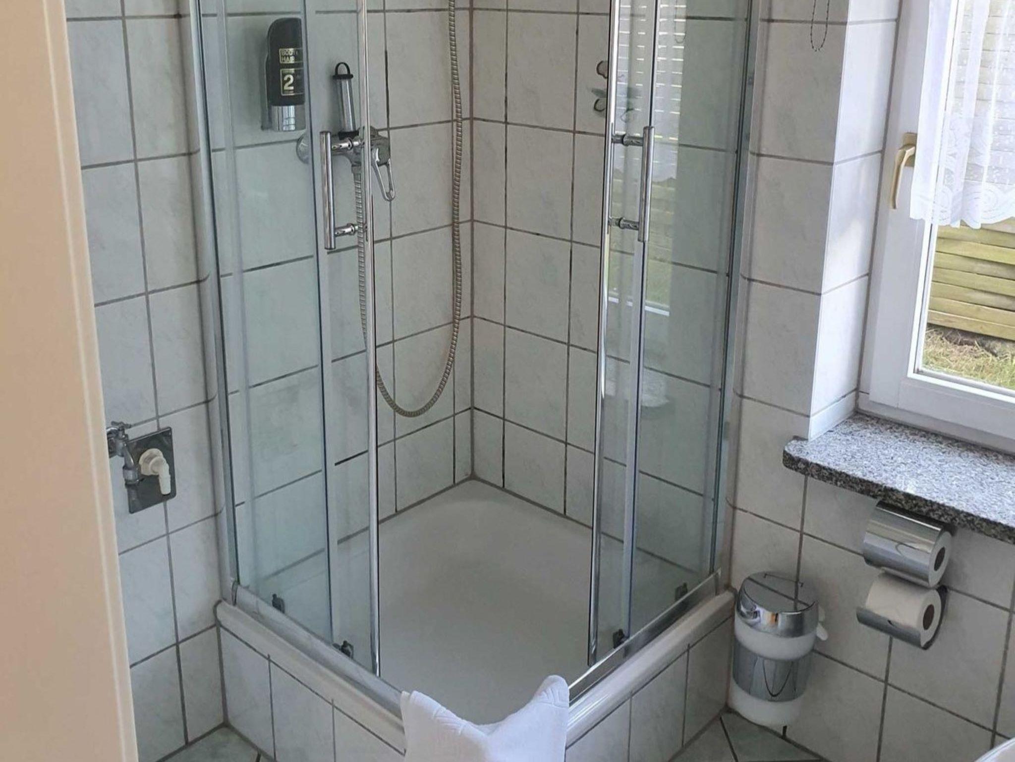 Die funktional gestaltete Ferienwohnung im Erdgeschoss hat einen offenen Wohnbereich mit Küchenzeile und Essbereich, ein Schlafzimmer mit Doppelbett, Nachtschränke und Kleiderschrank. Ein Gästezimmer mit einem Boxspringbett (140x200), Kleiderschrank und ein Tv. Die sehr funktionale Küchenzeile ist mit 4-Platten-Ceranfeld, Backofen, Kühlschrank, kleinen Gefrierschrank, Mikrowelle, Geschirrspüler, Kaffeemaschine und div. Geschirr ausgestattet. Ein Bad mit Fenster, Dusche, Waschbecken und WC komplettieren den guten Gesamteindruck der Wohnung.