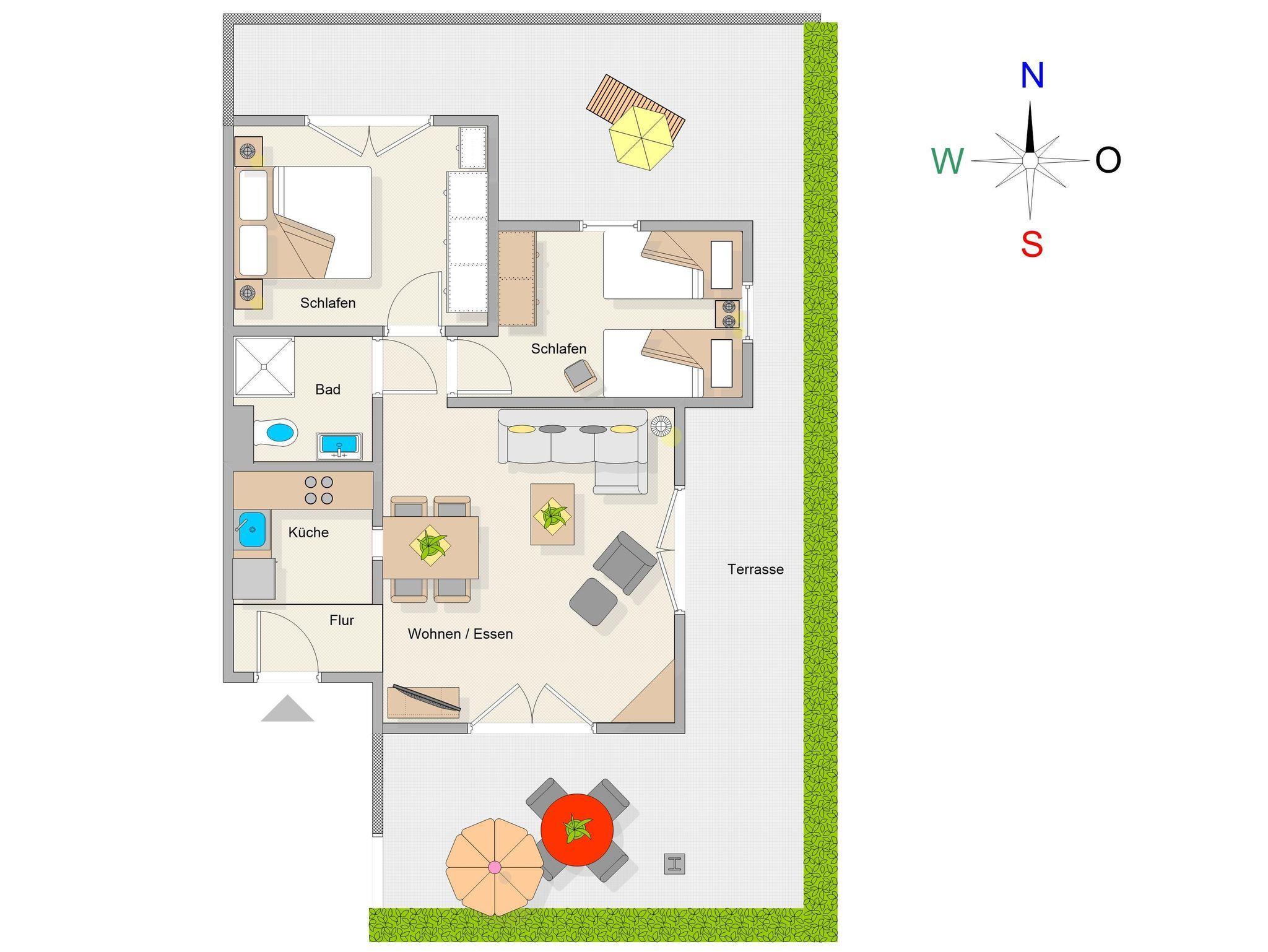 DIE WOHNUNG MÜHLENFALTER: 3-RAUM-FEWO MIT RUNDUM-TERRASSE (SÜD UND NORD)