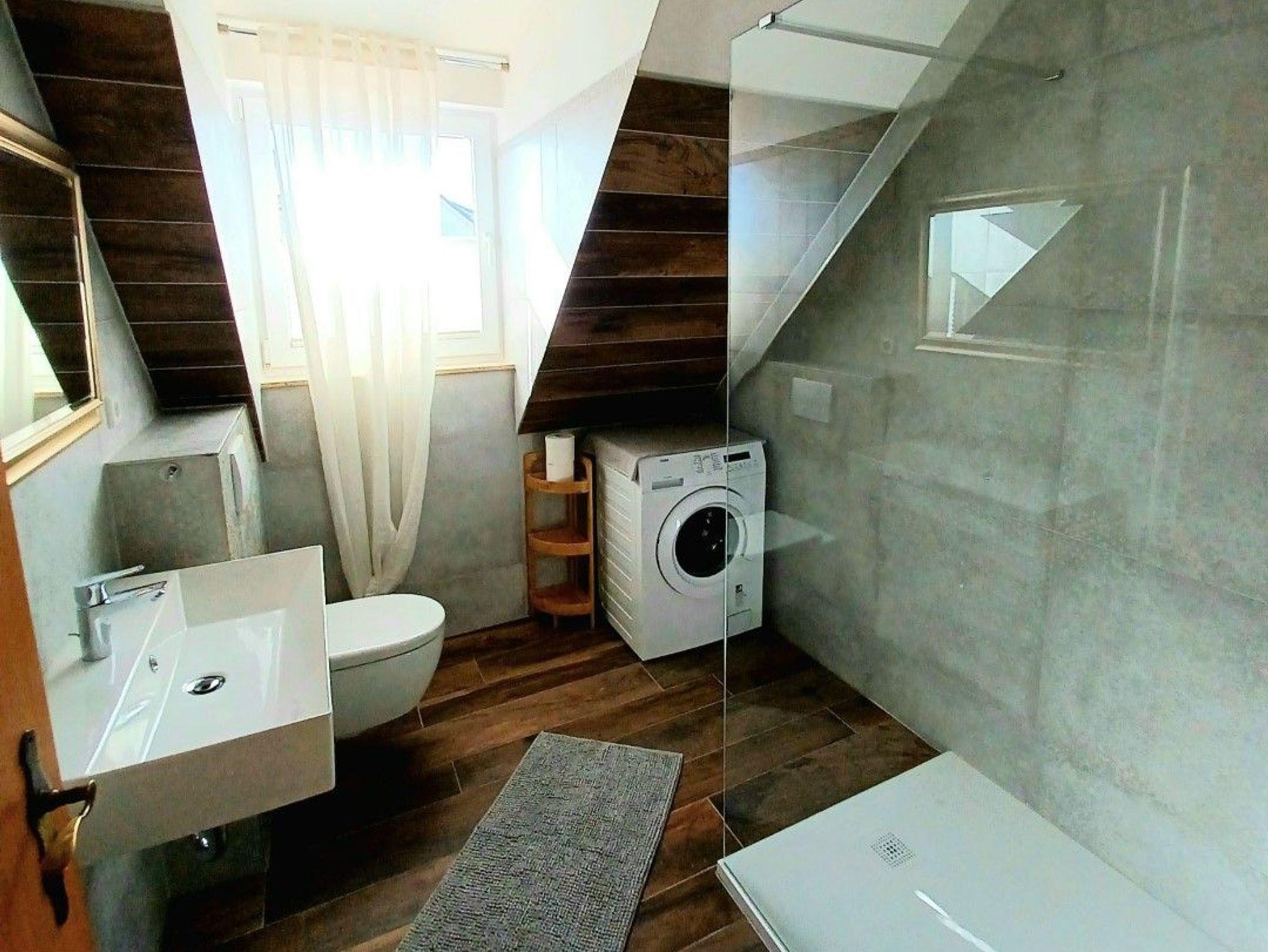 Die Ferienwohnung ist aufgeteilt in 2 Schlafzimmer (Doppel /Einzel), Flur, Wohnraum mit offener Küche, Essplatz. Das Badezimmer verfügt über Dusche / WC / Wachbecken und Waschmaschine.