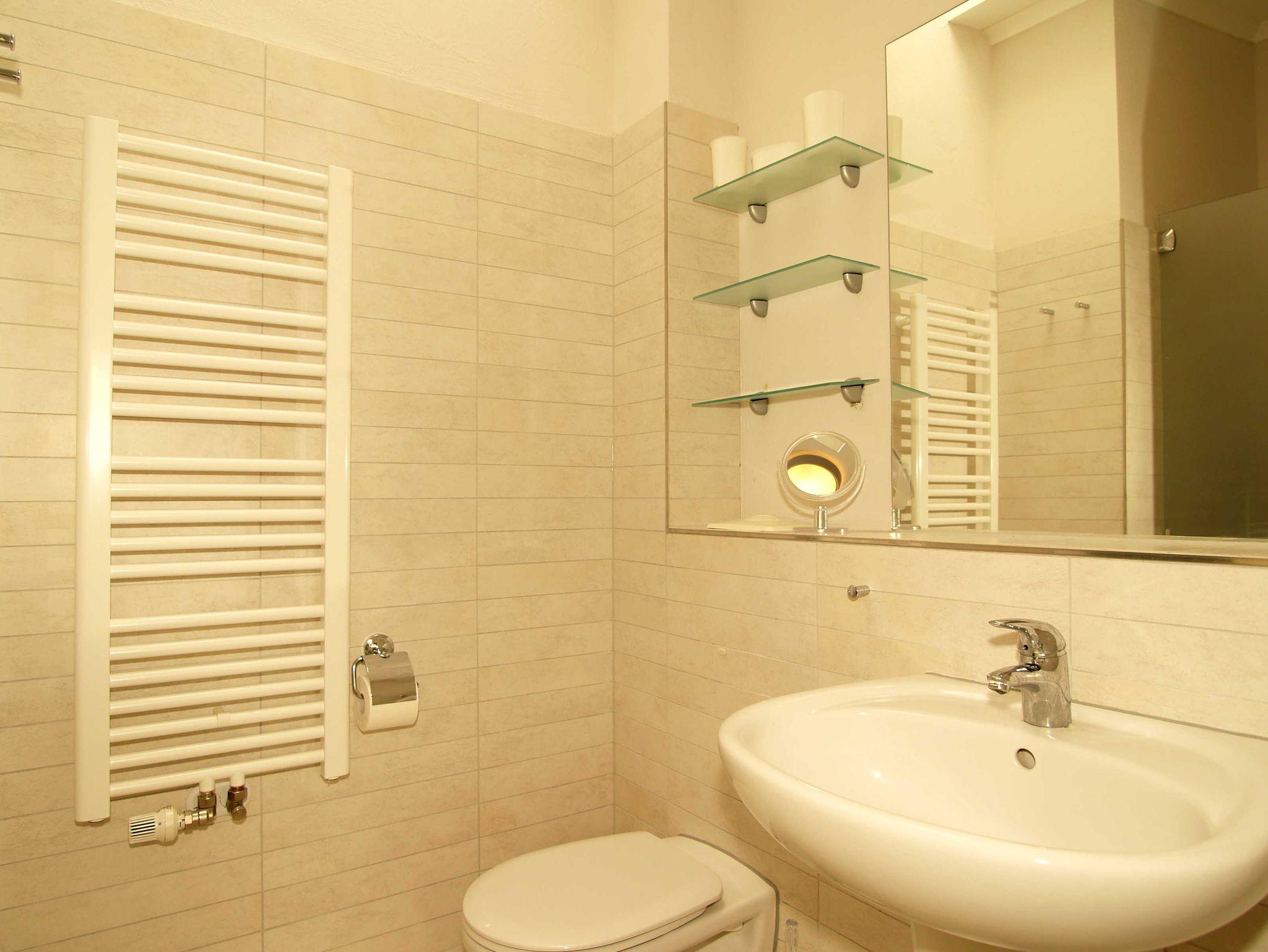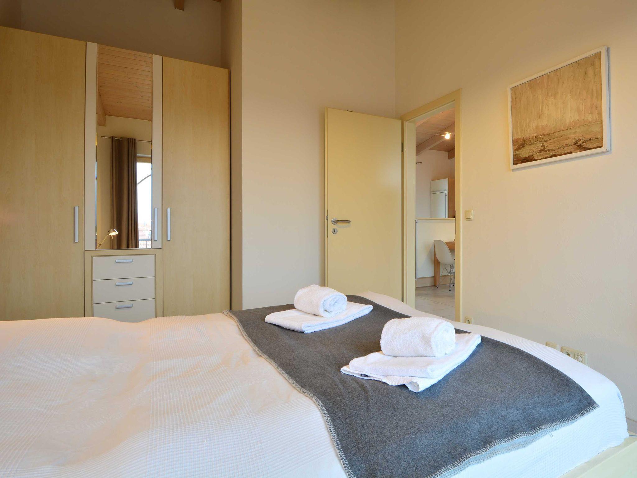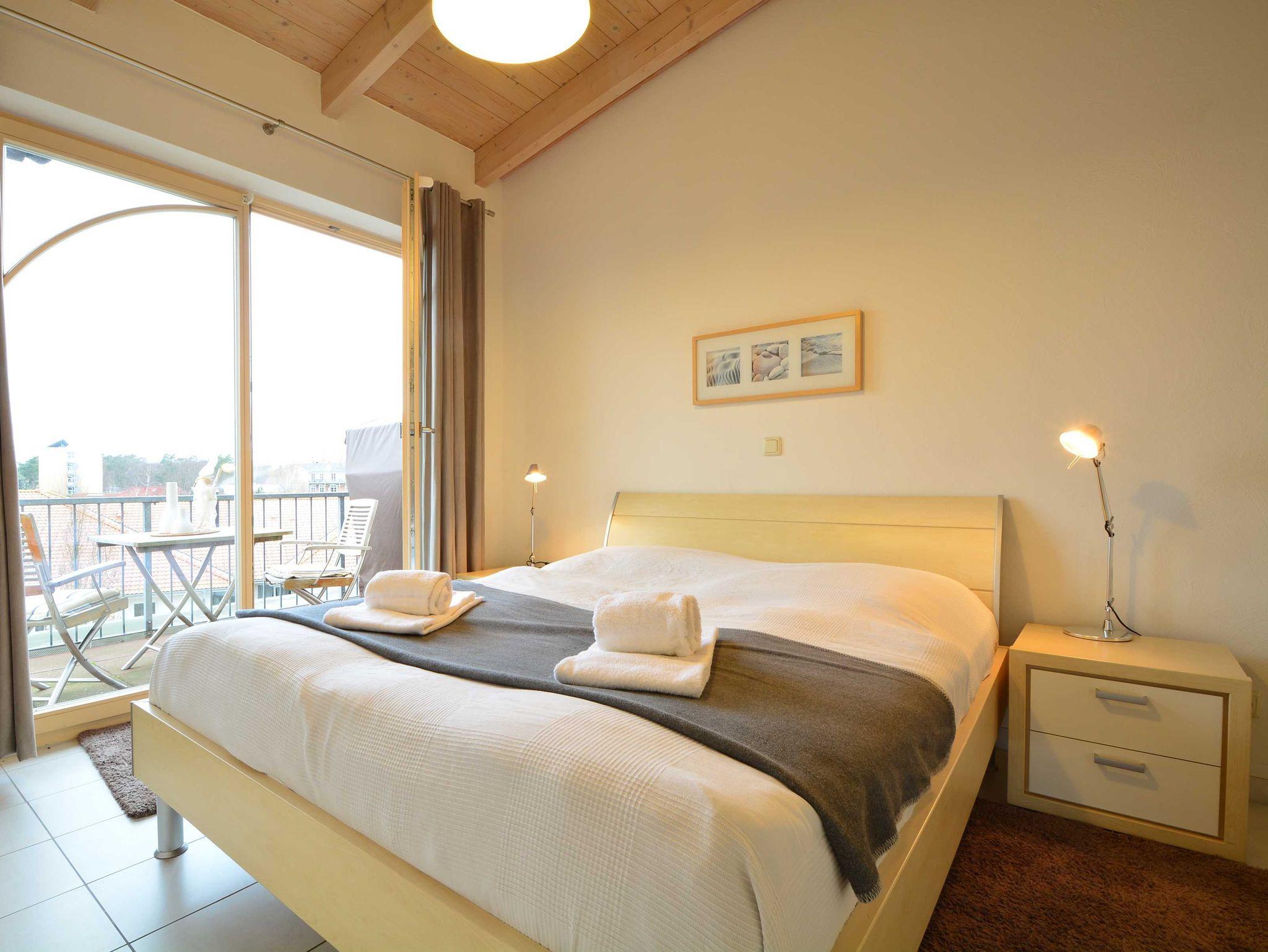 Hier kann Ihr Urlaub beginnen! Herzlich willkommen in der wunderschönen hellen lichtdurchfluteten Penthouse-Ferienwohnung in der Residenz Seestern! Das etwa 62qm große Appartement ist für 2 Personen geeignet und besticht durch den hellen freundlichen Wohnbereich im Dachgeschoss mit Panoramablick rund um die Stadt bis hin zur Ostsee. Vom gemütlich gestalteten Wohnraum können Sie direkt die beiden großen Dachterrassen (West und Ost-Terrasse) betreten, die einen herrlichen Blick über die Stadt bis hin zur Ostsee bieten. Das Terrassenmobiliar lädt zum Verweilen, Relaxen und Sonnenbaden ein. Aber auch ein leckeres Dinner lässt sich von hier genießen. Der Wohnraum ist ausgestattet mit Schlafcouch, Essplatz, Flachbild-TV, Radio und einer offen gestalteten Küchenzeile, die mit alle wichtigen Küchengeräten ausgestattet ist (Herd, Mikrowelle, Kaffeemaschine). Vom Wohnraum betreten Sie das Schlafzimmer, das mit einem Doppelbett und einem großen Kleiderschrank ausgestattet ist sowie einen Zugang zur West-Terrasse bietet. Das geflieste Bad ist ausgestattet mit Dusche, WC und Handtuchwärmer.