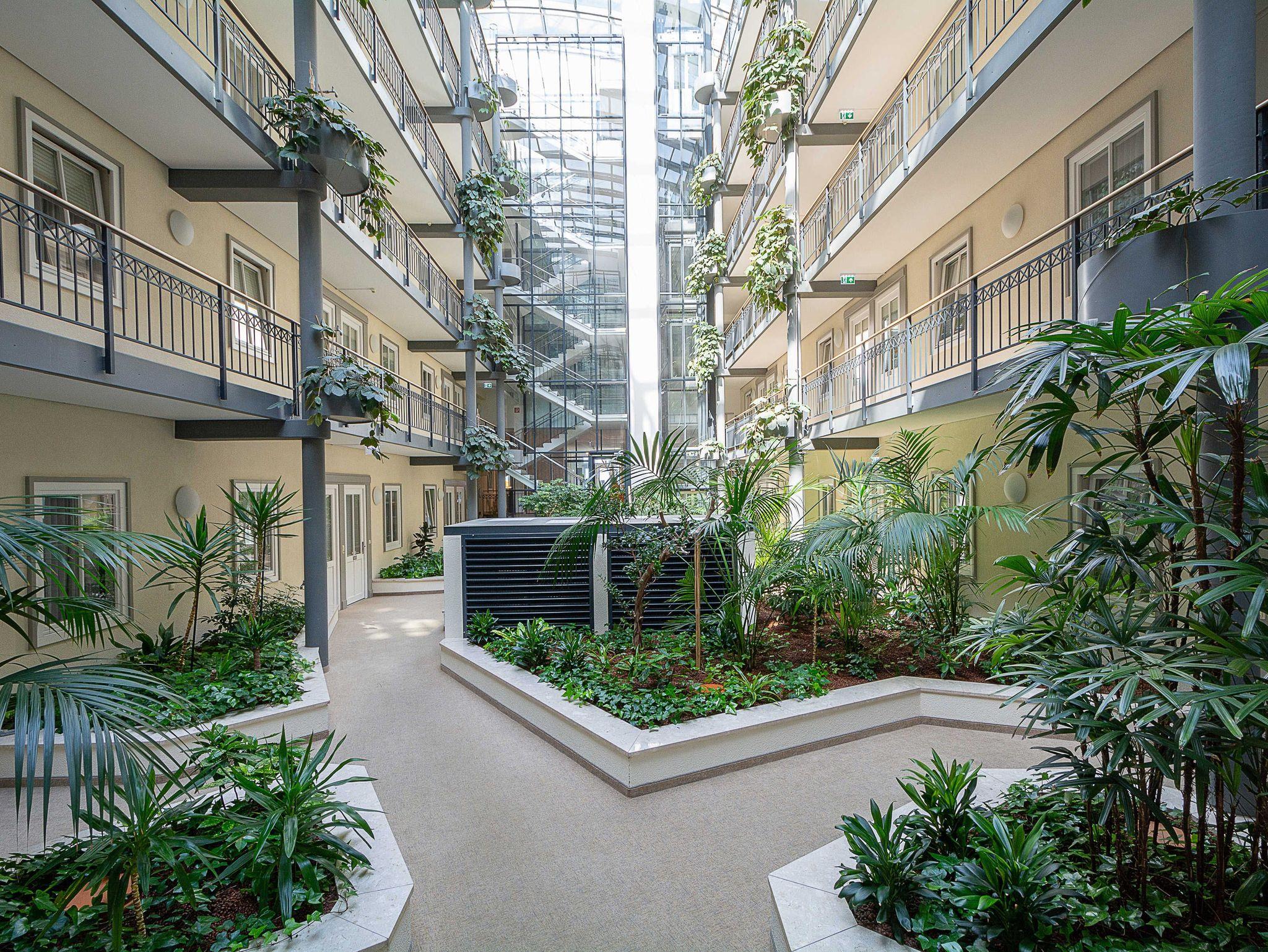 Das Haus Meeresblick wurde im Jahr 2000 nach dem Vorbild des alten Kurhauses von Kühlungsborn neu gebaut und befindet sich direkt am Strand. Die Architektur des Hauses verbindet Stilelemente der Jahrhundertwende mit modernen und komfortablen Ansprüchen unserer heutigen Zeit. Zwei gläserne Fahrstühle führen Sie durch das riesige, begrünte, glasüberdachte Atrium zu Ihrer Wohnung.
