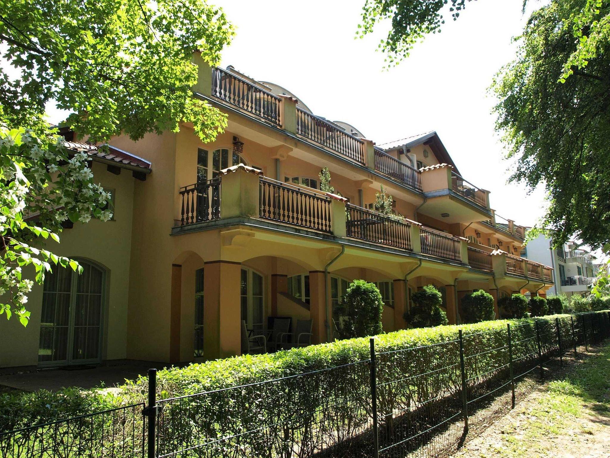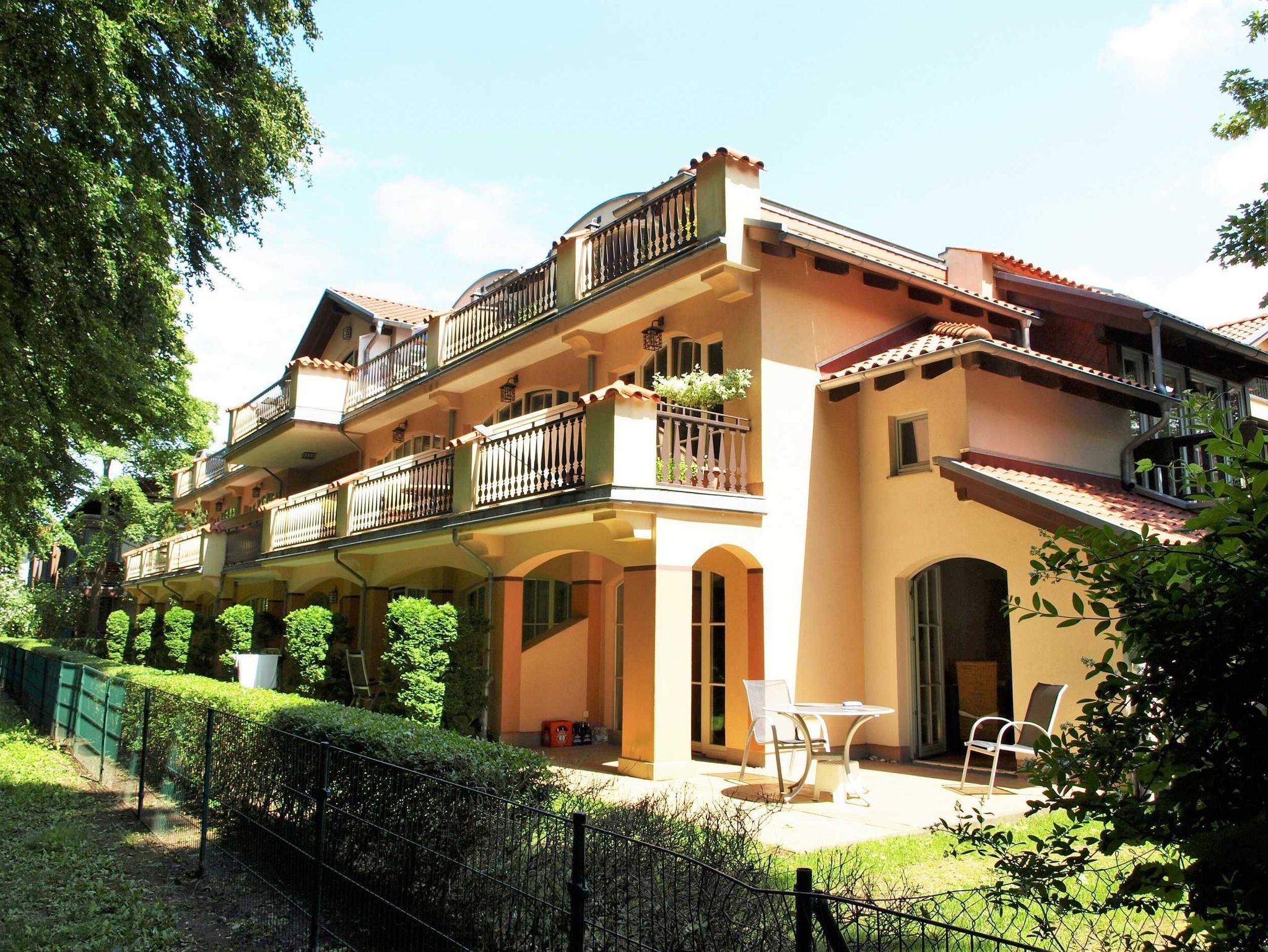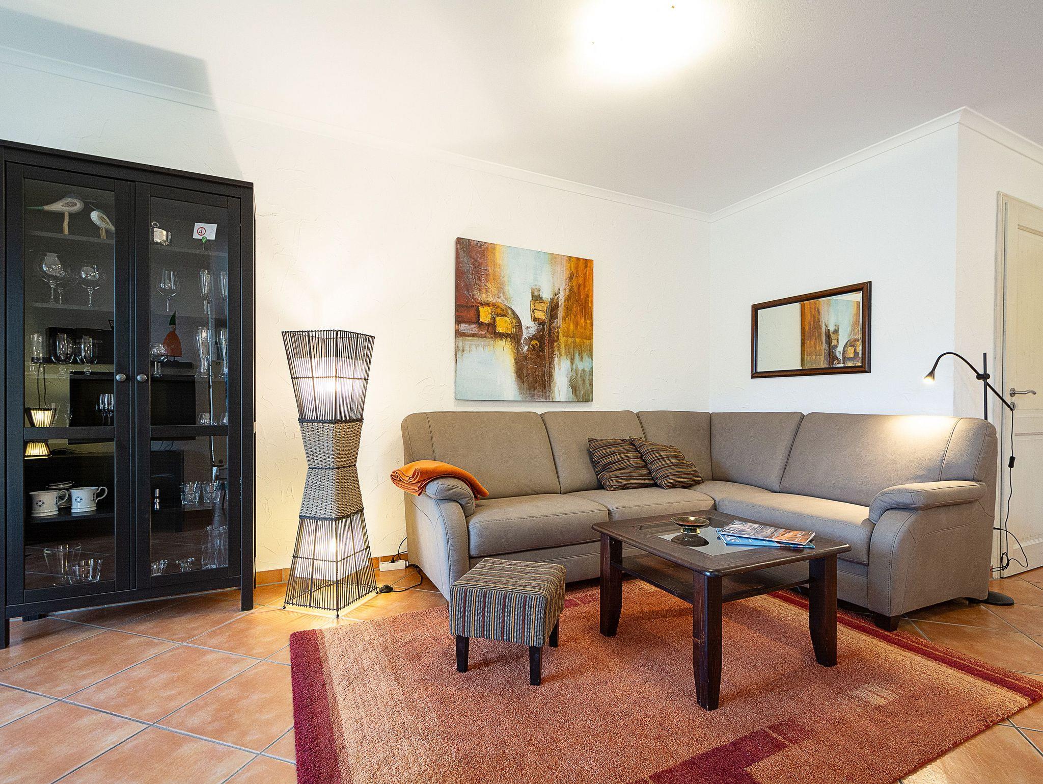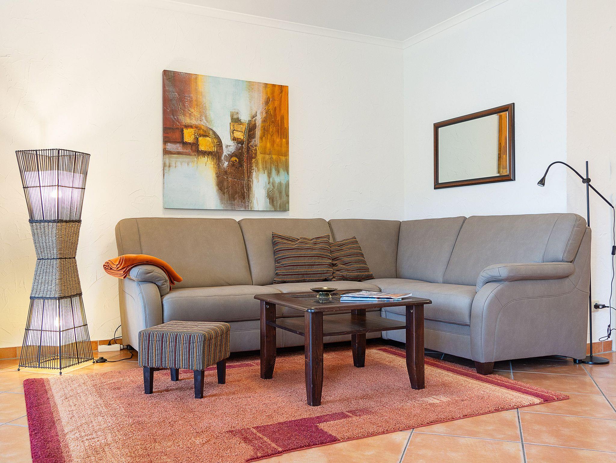 Mediterrane Ferienwohnung mit Sauna, Tiefgarage und ruhiger Terrasse nahe Wald und Strand.