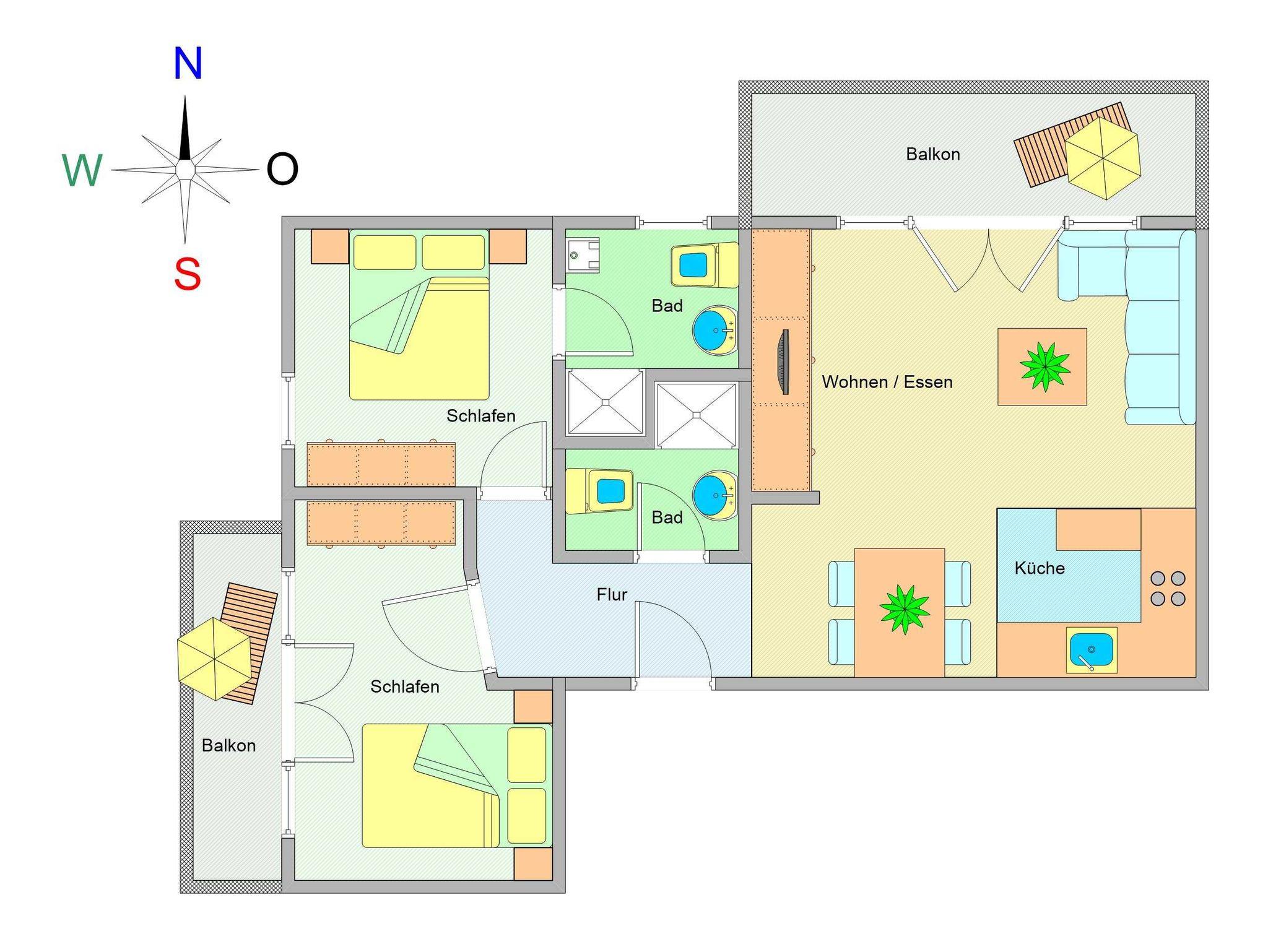 Ferienwohnung mit Sauna und zwei Balkonen