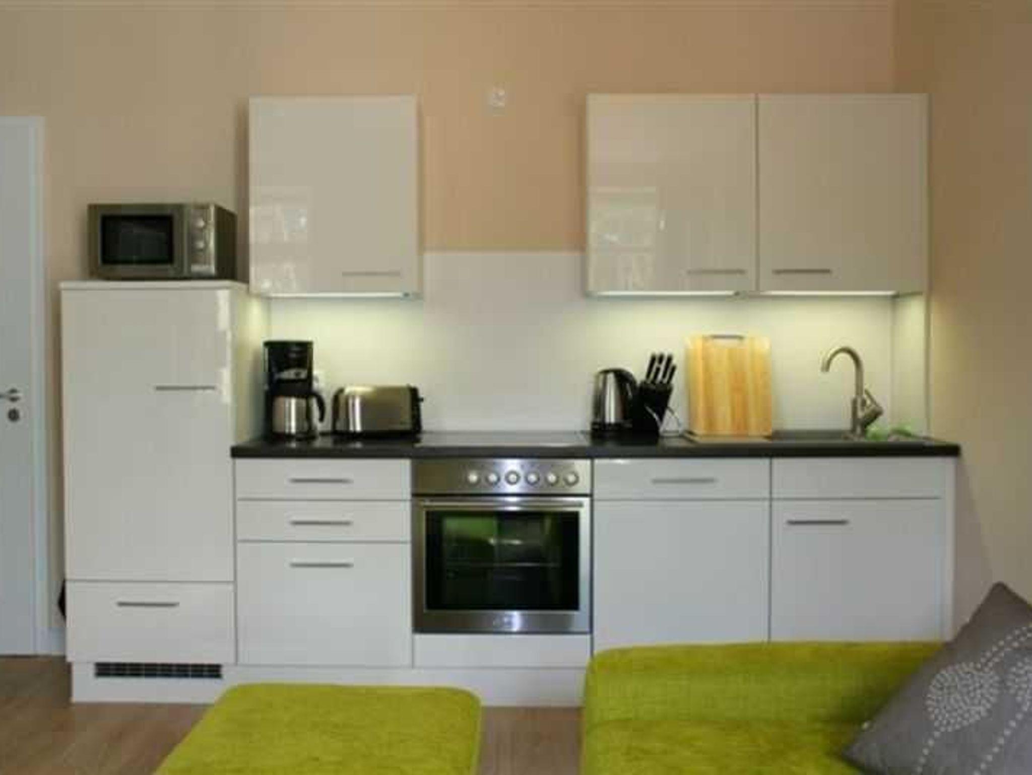 - Küche - Herd mit Backröhre, Mikrowelle, Kühlschrank mit Gefriermöglichkeit