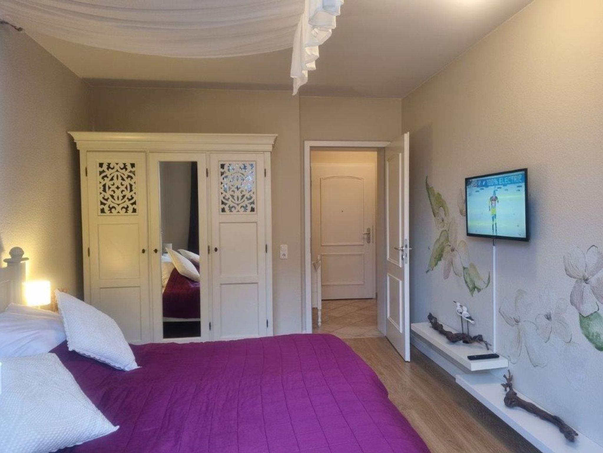 - 1. Schlafzimmer mit Doppelbett, Kleiderschrank und TV
