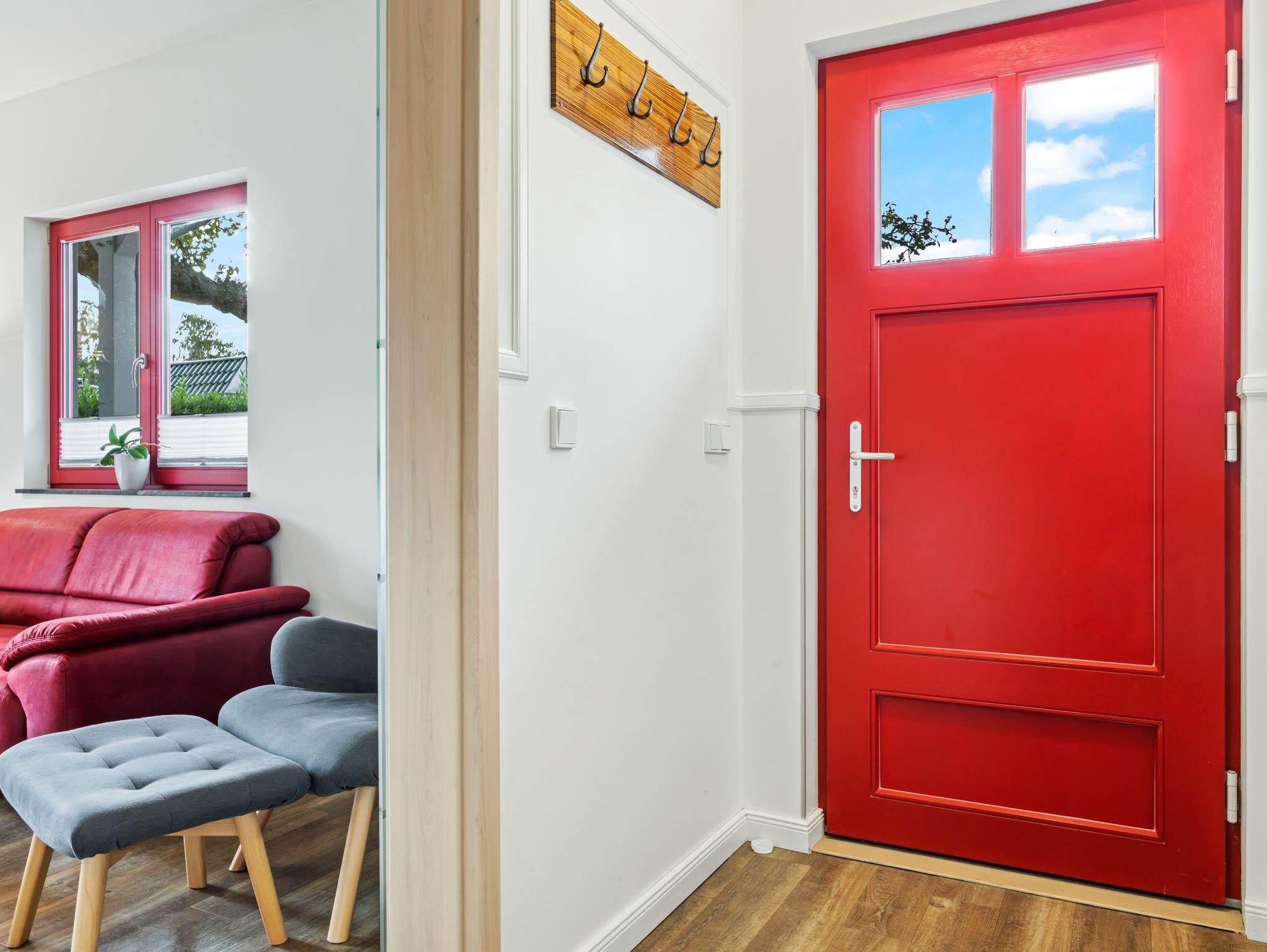 Das Wohnzimmer mit gemütlicher Sitzecke und TV lädt zum Entspannen und gemütlichen Beisammensein ein. Das Schlafzimmer ist mit Doppelbett und Kleiderschrank eingerichtet. Bad mit ebenerdiger Dusche und WC. Am Haus gibt es eine schöne Terrasse mit Möblierung und Hollywood Schaukel für entspannte Urlaubsstunden unter freiem Himmel.