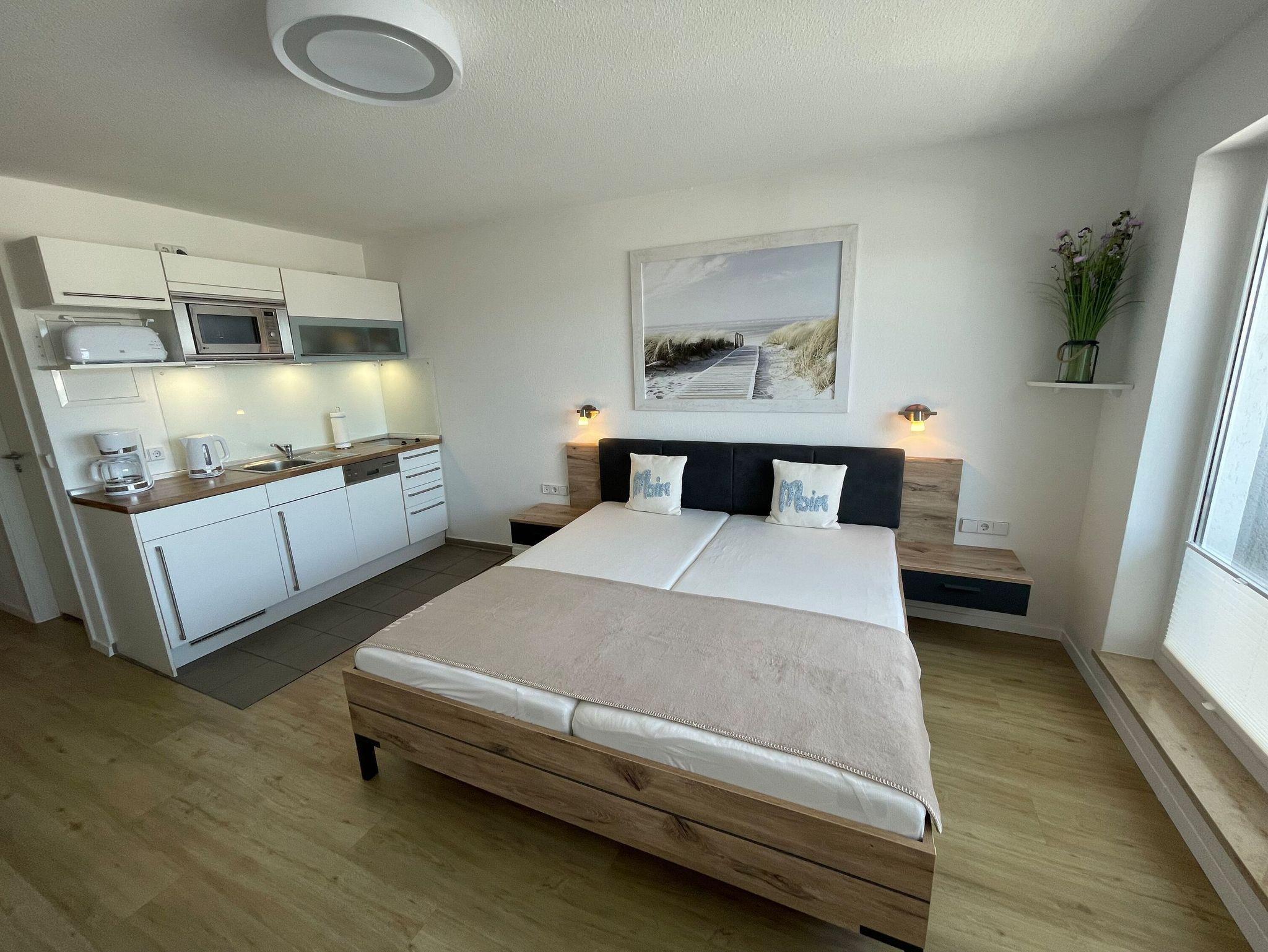 Moderne Ferienwohnung in der Yachthafenresidenz nahe Strand, mit Balkon, WLAN und voll ausgestatteter Küchenzeile.