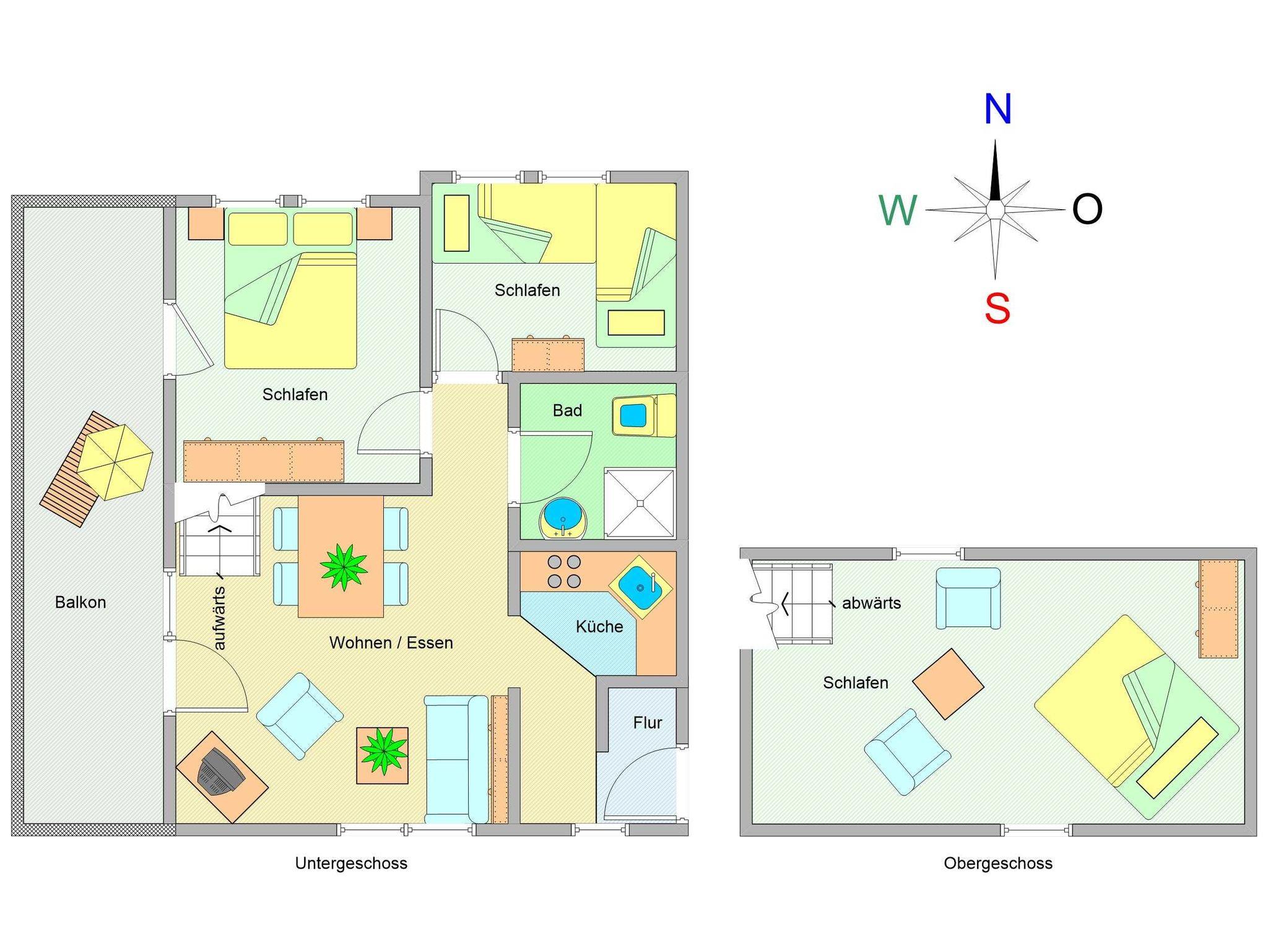 4-RAUM-MAISONETTE-FEWO FÜR BIS ZU 5 PERSONEN MIT WEST-BALKON
