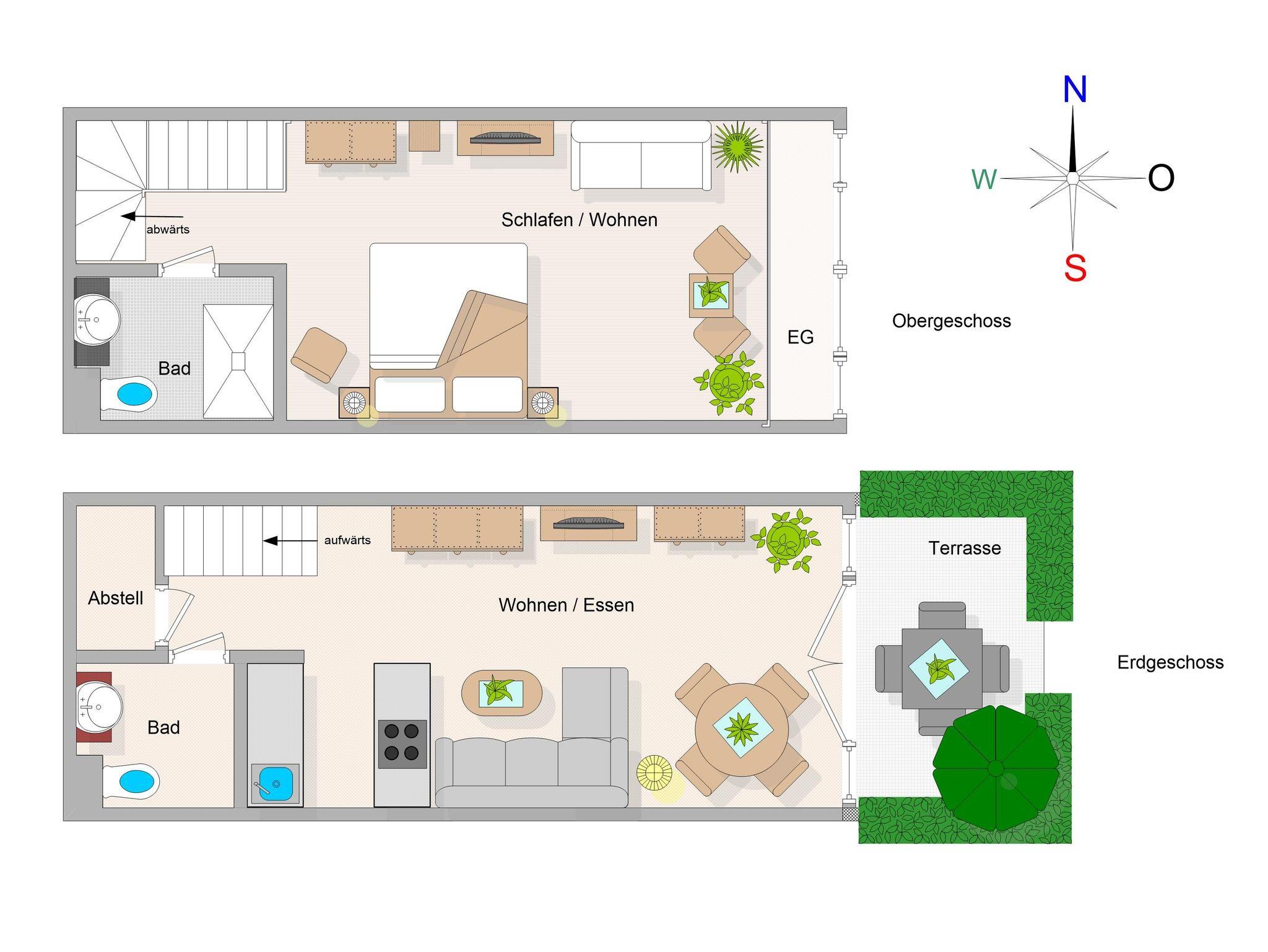 HELLE GEMÜTLICHE 2-RAUM-MAISONETTE-FERIENWOHNUNG MIT TERRASSE