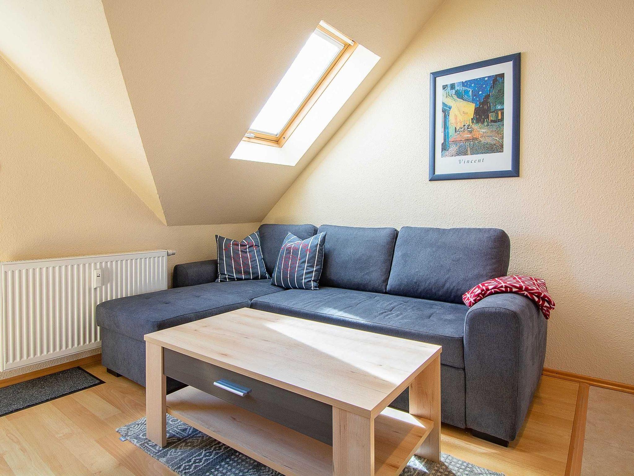 Herzlich willkommen in der Ferienwohnung Nr. 09 im Haus Zaunkönig! Die liebevoll und modern eingerichtete 2-Raum-Ferienwohnung befindet sich im ersten Obergeschoss des Hauses. Auf 35 qm Wohnfläche können hier bis zu 3 Personen erholsame Urlaubstage genießen. Es empfangen Sie ein heller offener Wohn- und Schlafbereich mit einer Küchenzeile, ein Schlafzimmer sowie ein Duschbad.