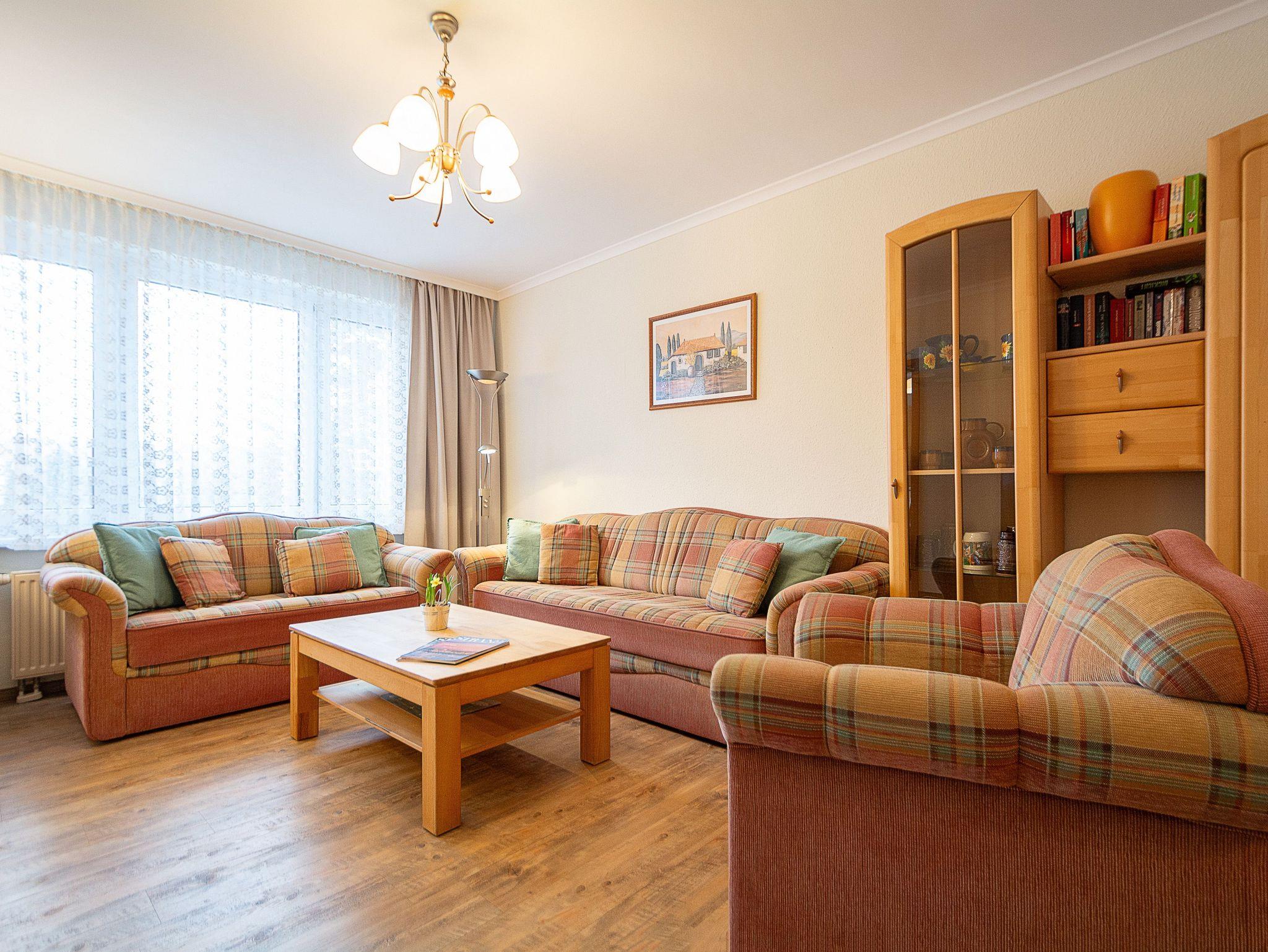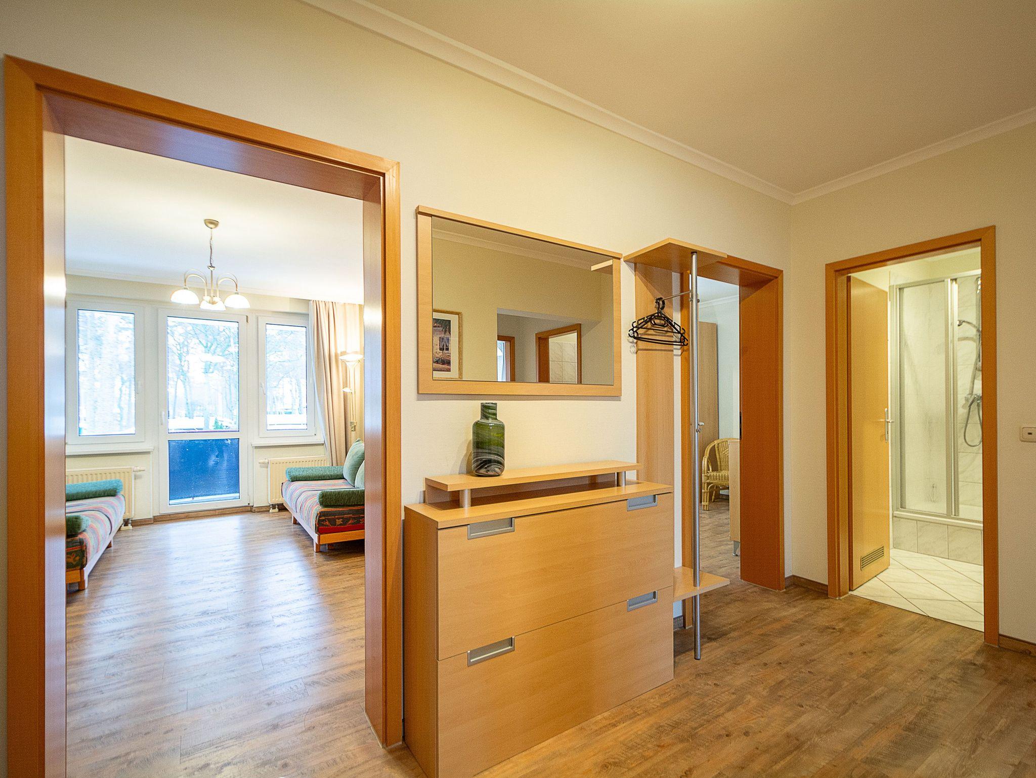 Herzlich willkommen in der Wohnung Nr. 40 in der Residenz Dünengarten. Sie wohnen in einer ca. 78m² großen 3-Raum-Ferienwohnung, die sich im 1. Obergeschoss des Hauses befindet. Es empfangen Sie ein heller offener Wohn-und Essbereich, eine separate Küche, zwei Schlafzimmer, ein Duschbad und ein Gäste-WC sowie ein Balkon.