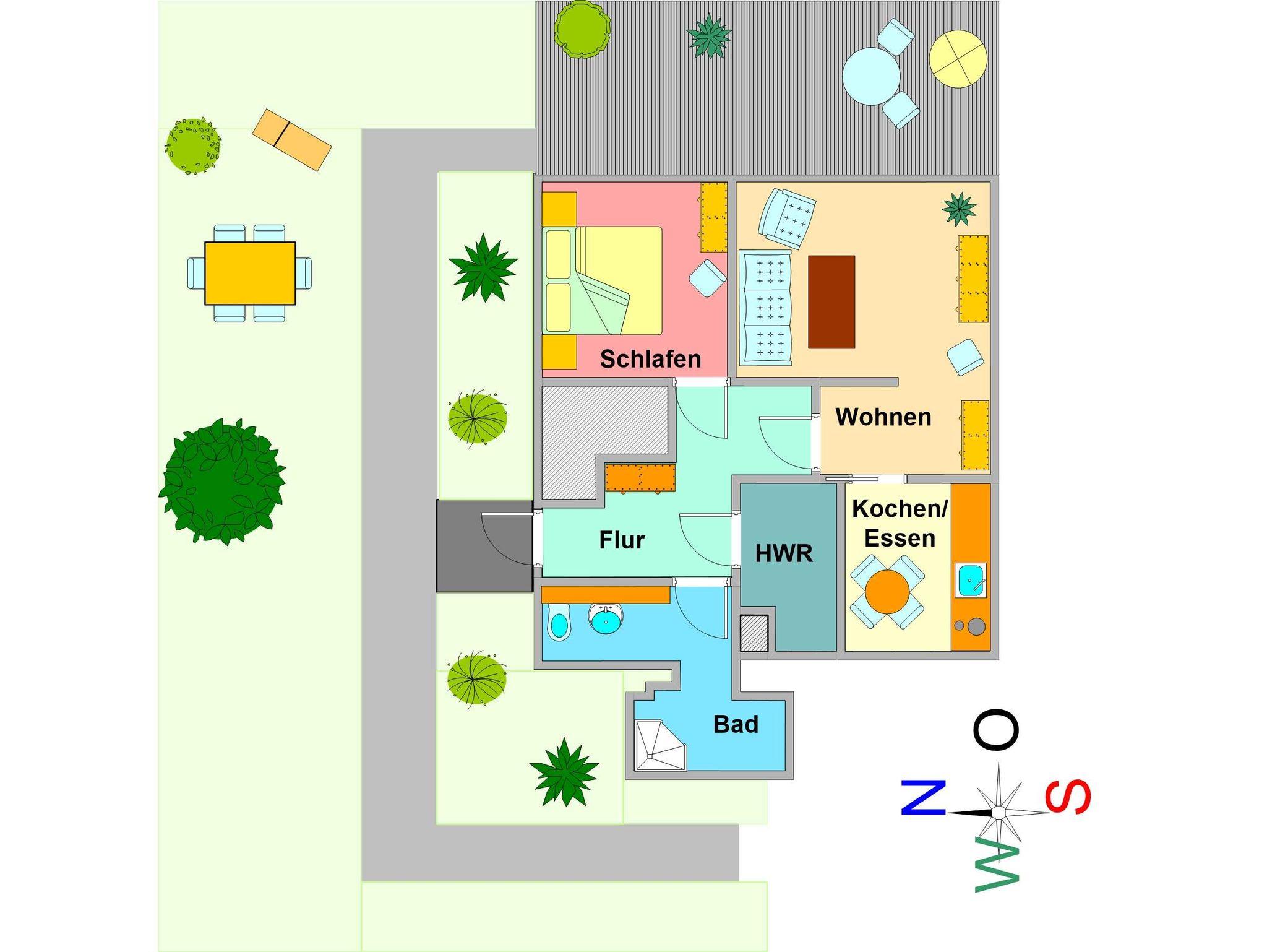 2-RAUM-FERIENWOHNUNG MIT GARTENNUTZUNG UND 2 TERRASSEN