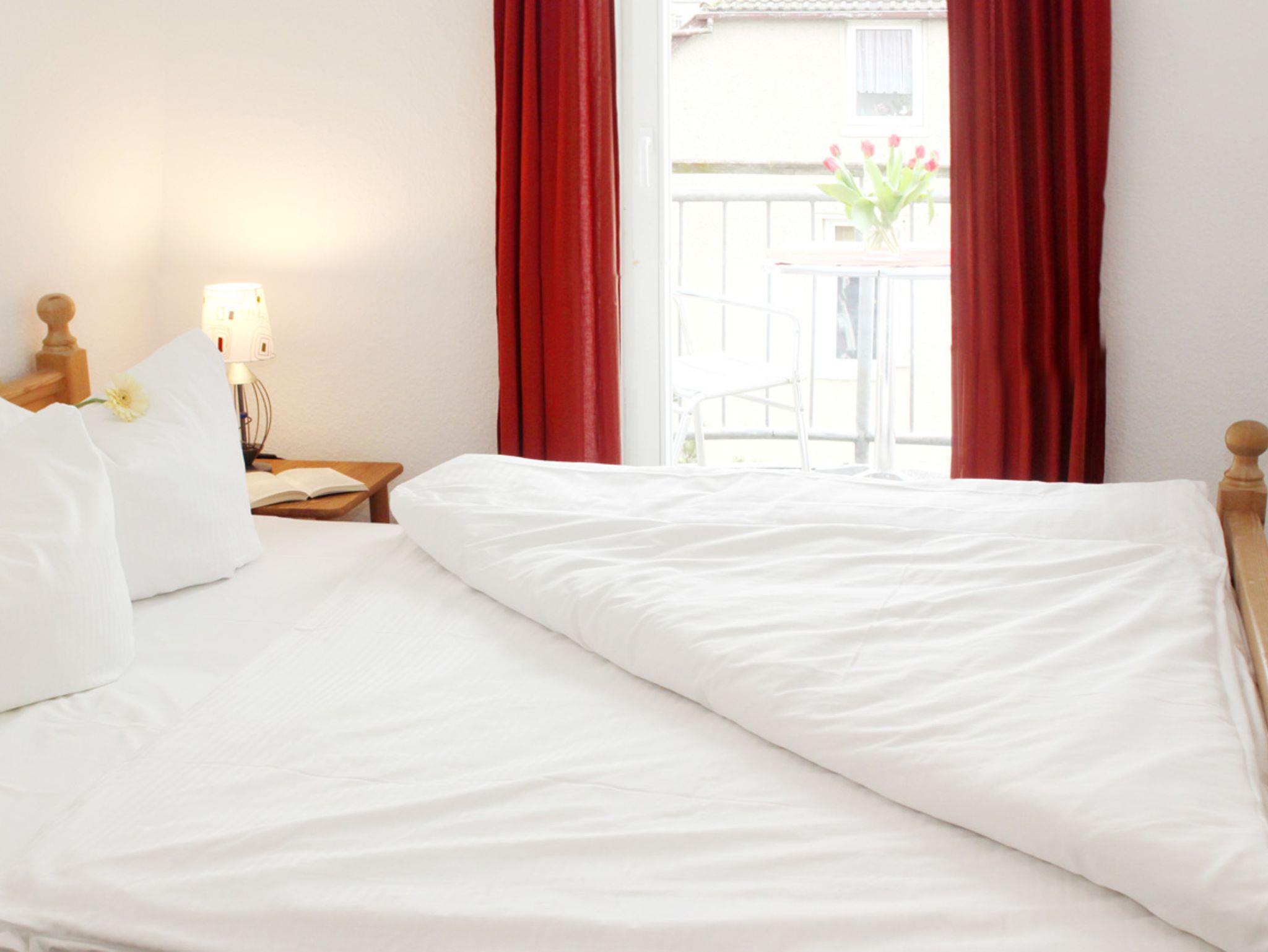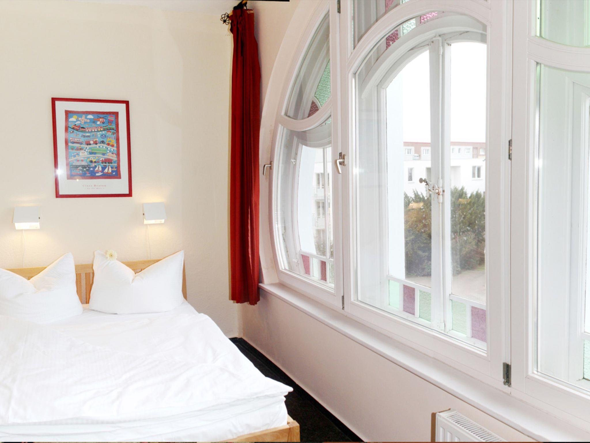 Die beiden Schlafräume sind jeweils mit einem Doppelbett ausgestattet. Ein Schlafraum hat einen kleinen Südbalkon, auf dem Sie die Sonne bis in die Abendstunden genießen können. Im zweiten Schlafzimmer ist die besondere Atmosphäre durch das große, geschwungene Jungenstilfenster geprägt.