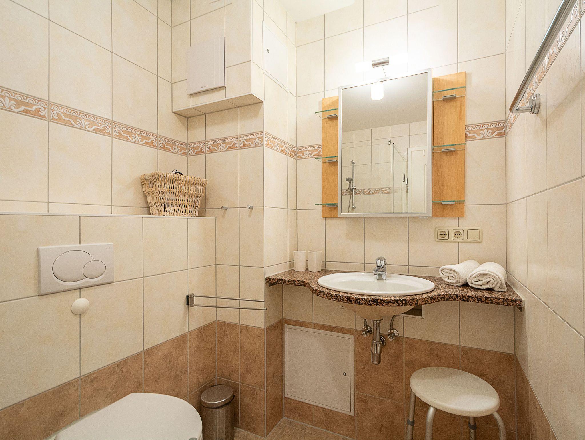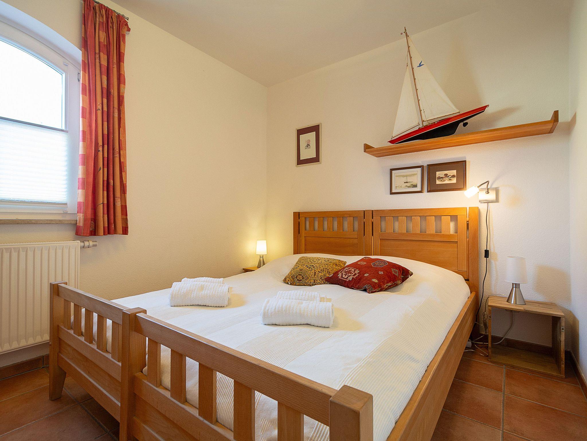 Sie erholen sich in einer liebevoll eingerichteten 3-Raum-Wohnung von ca. 62 m² Größe, die im 1. Obergeschoss liegt. Das Wohnzimmer ist ausgestattet mit Küchenzeile (Herd mit Backofen, Kaffeemaschine, Wasserkocher, Toaster) und TV-Gerät. Der Balkon, auf dem Sie den Tag ausklingen lassen können, erreichen Sie vom Wohnraum aus und geht in Richtung Osten. Zwei Schlafzimmer mit jeweils einem Doppelbett, sowie das Bad mit Dusche und WC vervollständigen das Gesamtbild dieser Wohnung.