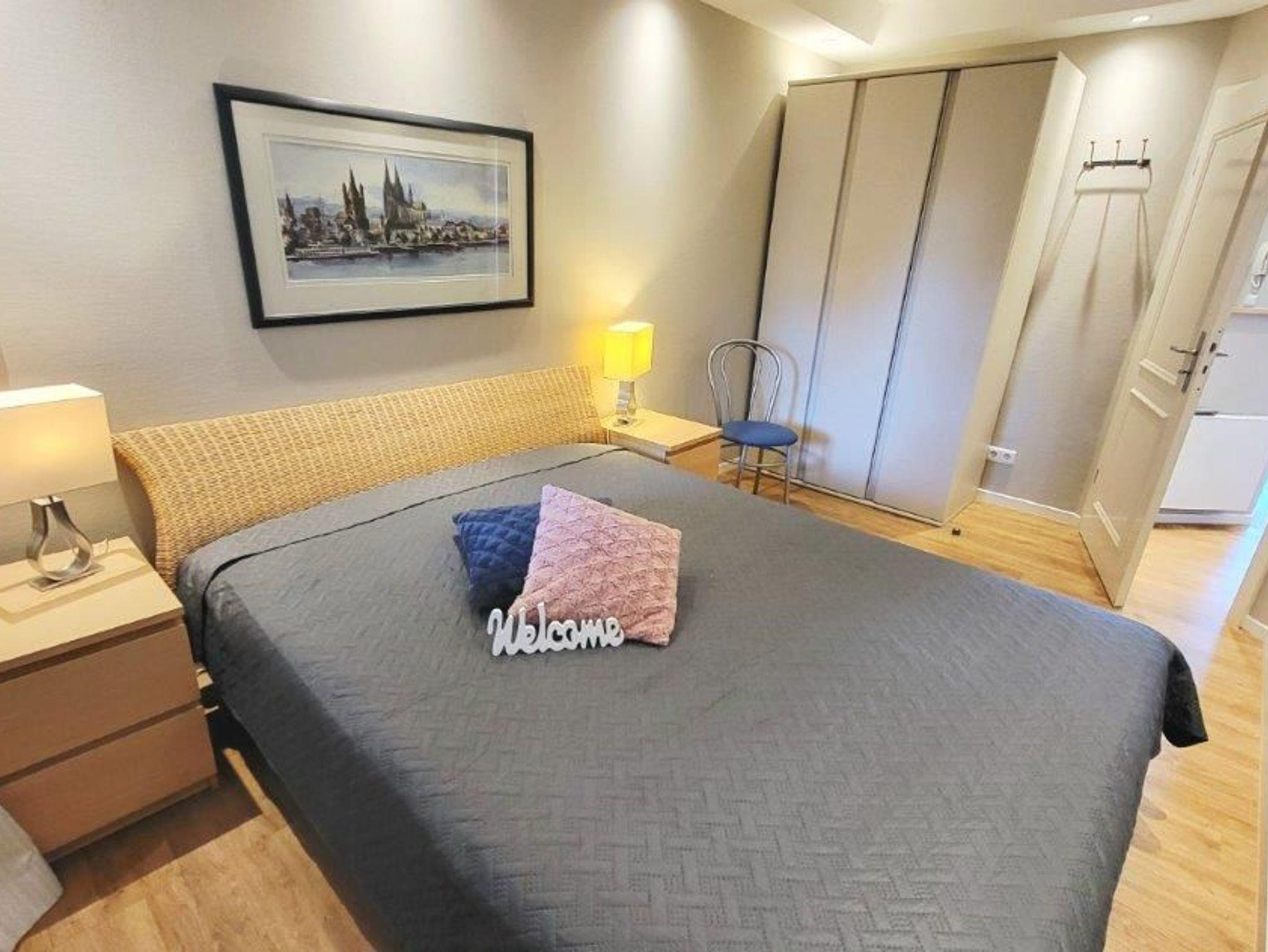 - 1. Schlafzimmer mit Doppelbett, Kleiderschrank und TV