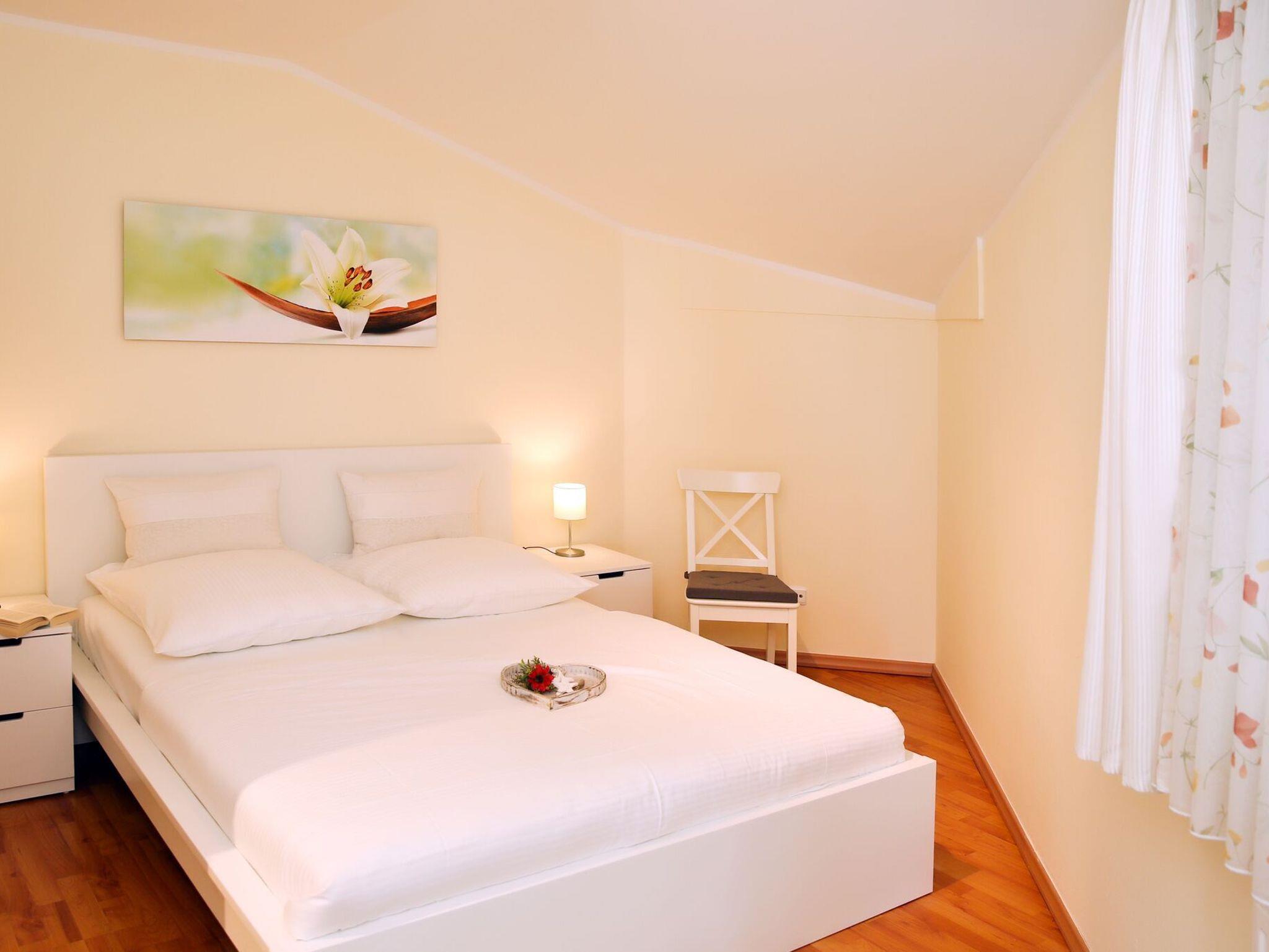- 1. Schlafzimmer mit Doppelbett (1.80m), Kleiderschrank und TV direkter Meerblick