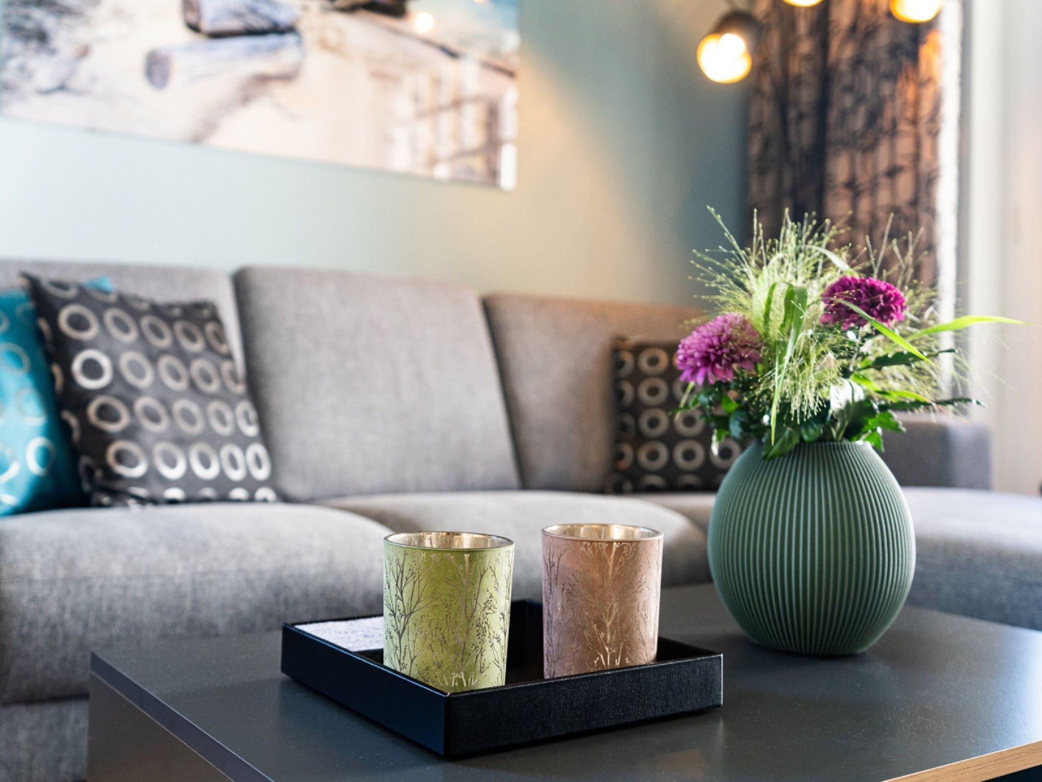 Eine Bluetooth fähige Audio/CD Anlage, ein DVD/Blu-ray Player und eine kleine Medienbibliothek (Bücher/CDs/DVDs) runden das Angebot ab. Denn wenn das Wetter mal nicht so mitspielen sollte, sollen Sie die Möglichkeit haben, sich auch in der Wohnung wohlzufühlen.