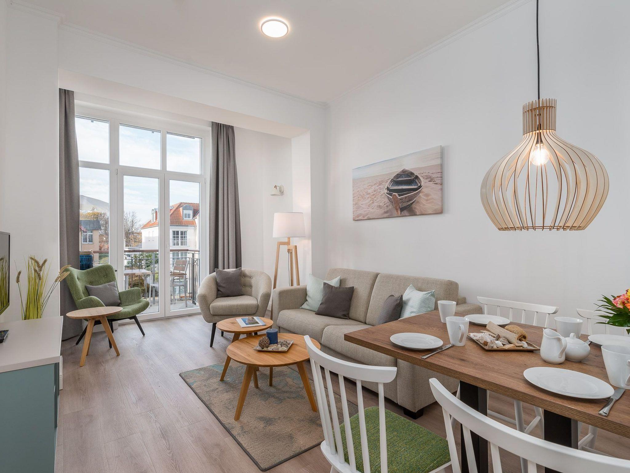 Modernes Apartment in Kühlungsborn West, 200 m vom Strand, mit Balkon und offener Küche.