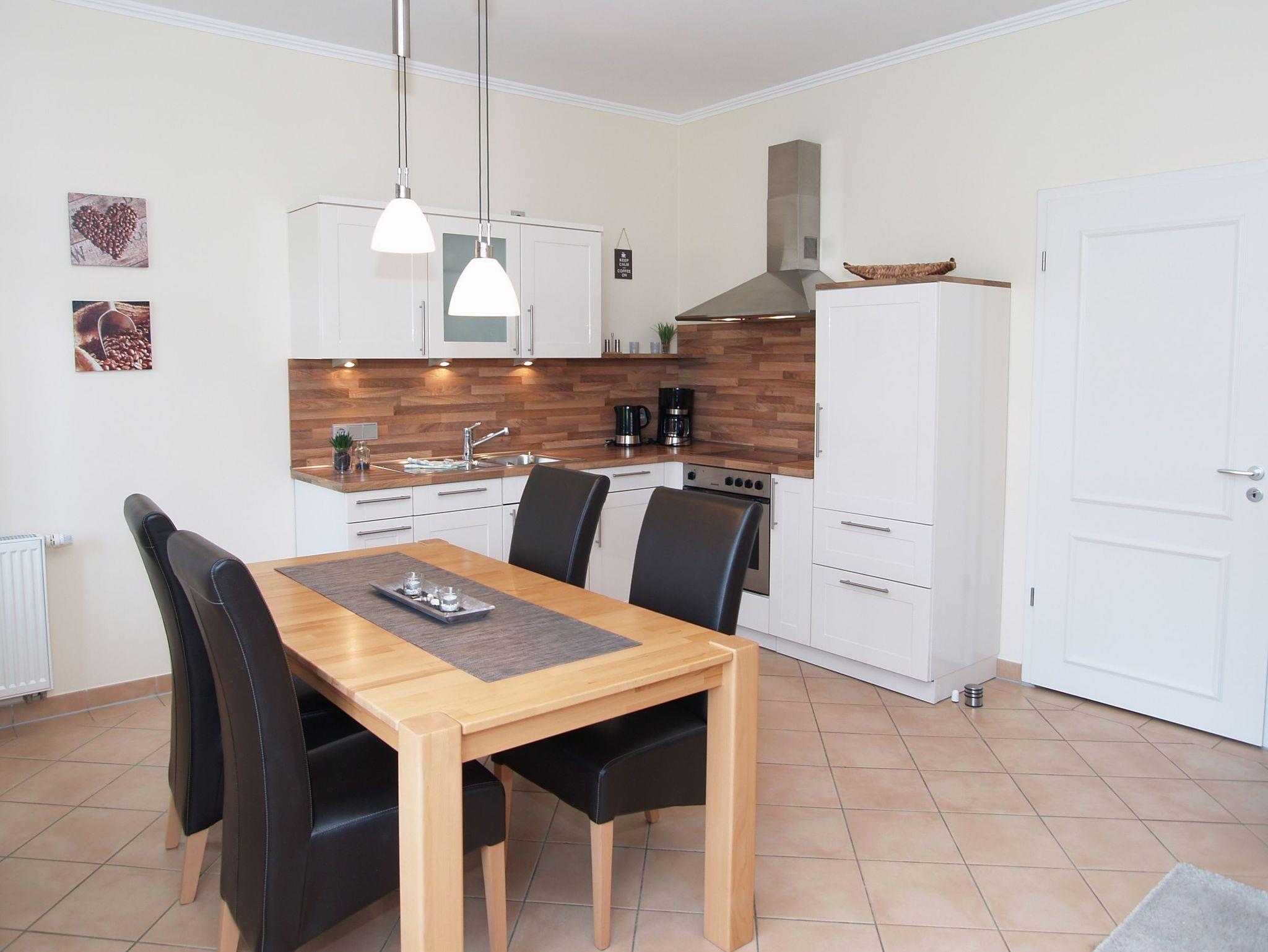 Sie wohnen in einer 56m² großen 2-Raum-Ferienwohnung, die sich im 1. Obergeschoss der Villa Barbarossa befindet. Der helle freundliche Wohnraum ist ausgestattet mit einer gemütlichen Couchgarnitur (Schlafcouch ausziehbar 160cm breit), einem Esstisch, 38-Zoll-Flachbild-TV und Radio sowie einer offenen Küchenzeile, die über alle wichtigen Küchengeräte und -utensilien verfügt (4-Zonen-Cerankochfeld mit Dunstabzug, Backofen, Geschirrspüler, Kühlschrank mit Gefrierfach, Kaffeemaschine, Wasserkocher u.v.m.). Sowohl vom Wohnraum als auch vom Schlafraum aus betreten Sie den nach Osten ausgerichteten Balkon. Der Schlafraum ist ausgestattet mit einem Doppelbett (160 cm x 200 cm), einem großem Kleiderschrank für Ihre Urlaubsgarderobe sowie einem 2. TV-Gerät (31 Zoll). Das geflieste Tageslichtbad mit Dusche und WC bietet genügend Ablagefläche für Ihre Badutensilien.