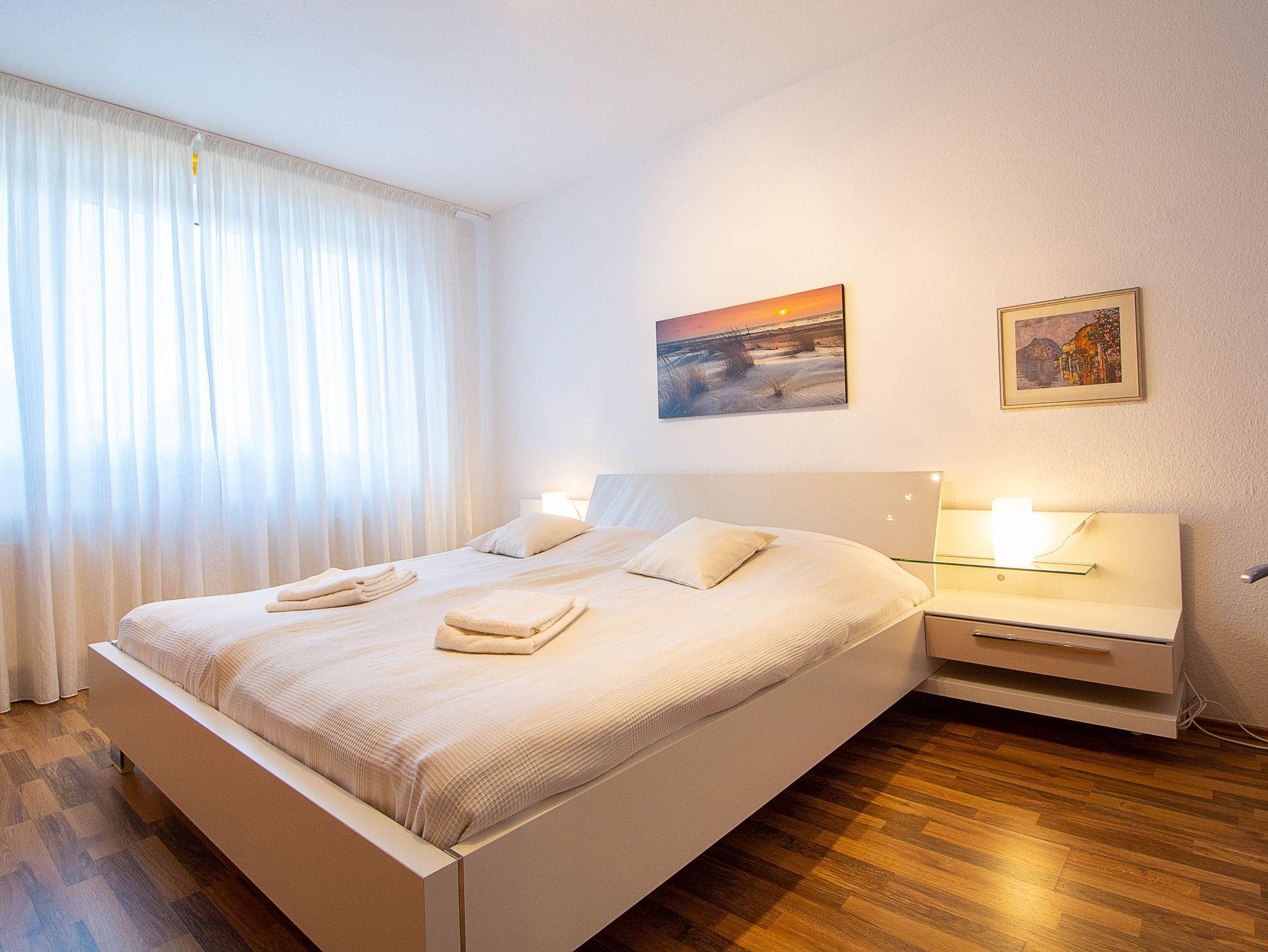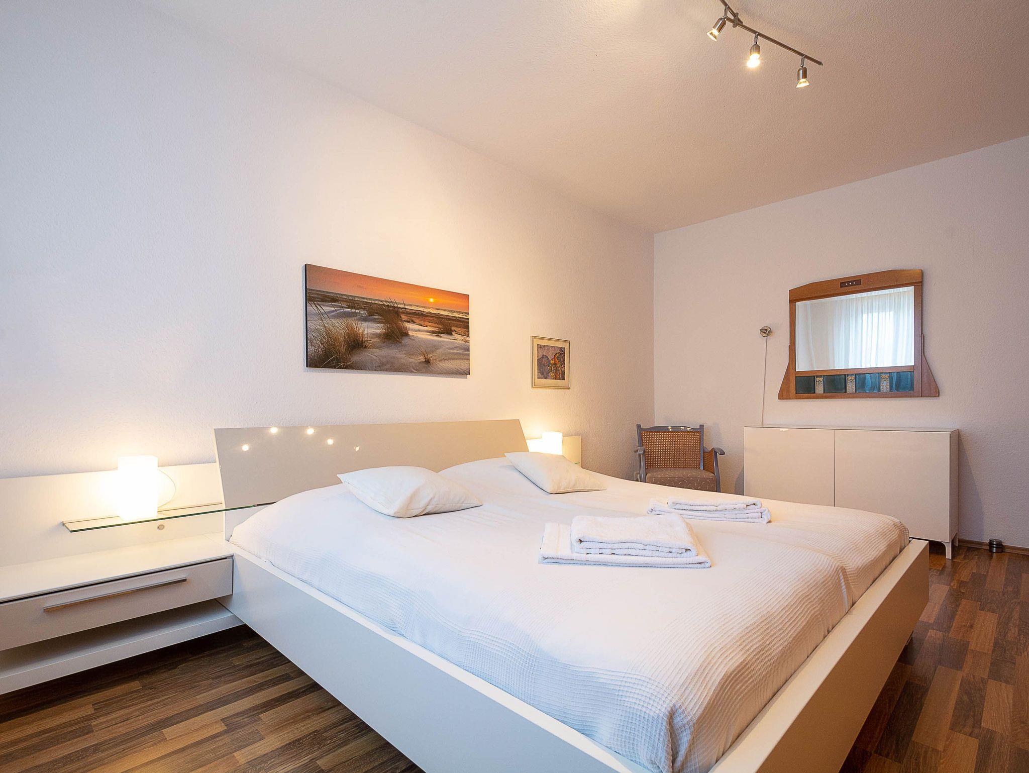 Im Schlafzimmer lädt Sie ein komfortables Doppelbett (2 x 90cm x 200cm) zur Nachtruhe ein. Der großzügige Kleiderschrank bietet genügend Platz für Ihre Urlaubsgarderobe. Das geflieste Tageslichtbad mit einer Dusche, Waschbecken und WC sowie einem Handtuchheizkörper vervollständigt das Gesamtbild dieser Wohnung.