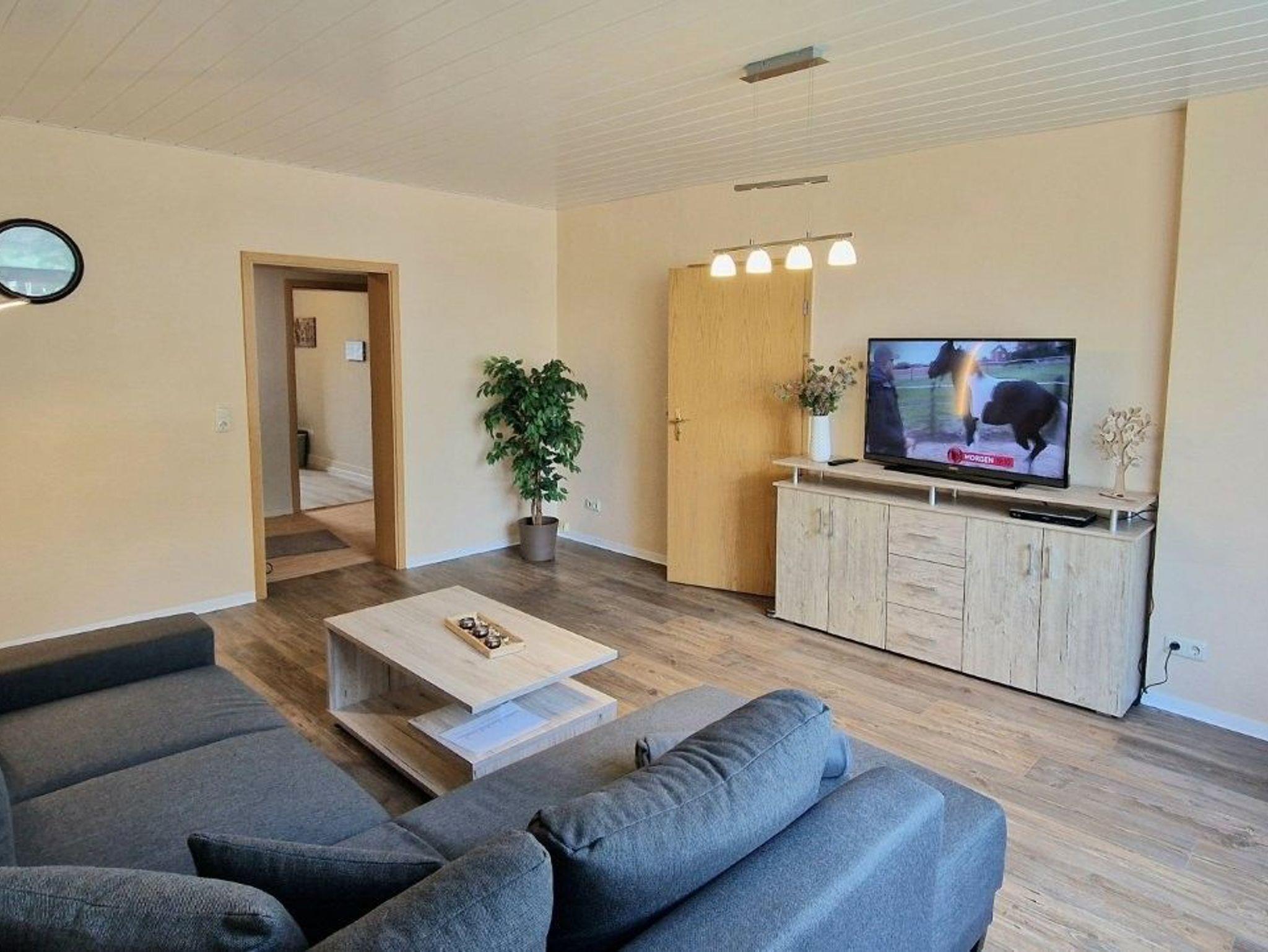 - Wohnbereich mit gemütlicher Couch und Flachbild TV