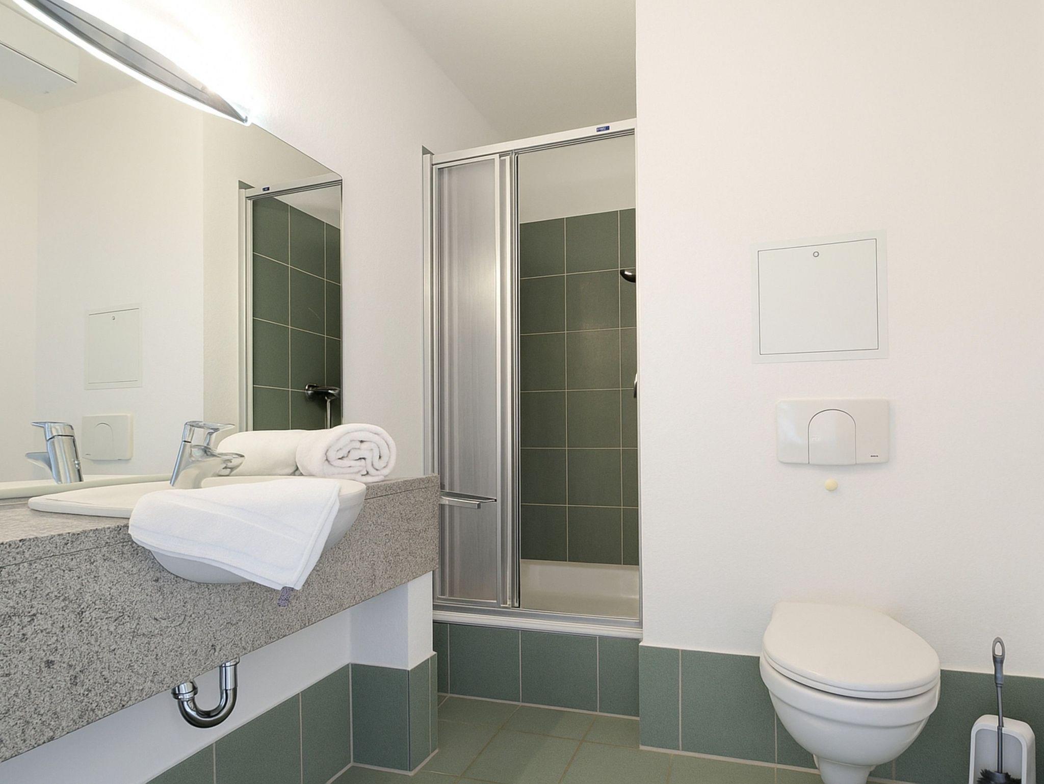 Abgerundet wird das Gesamtbild durch das moderne Badezimmer mit Dusche und WC.
