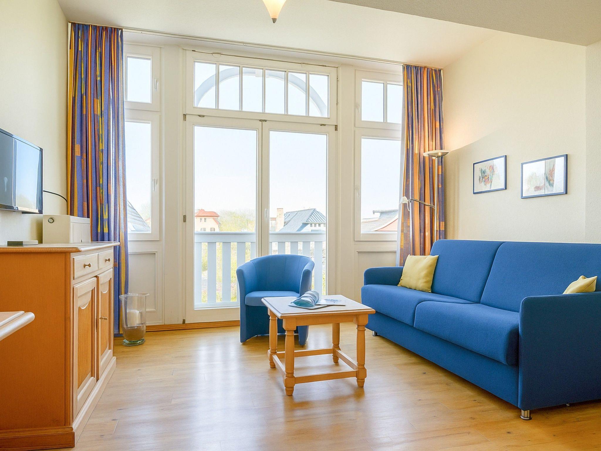 Helle 2-Zimmer-Ferienwohnung in Kühlungsborn nahe Strand und Zentrum, mit Parkplatz und moderner Ausstattung.